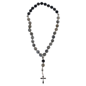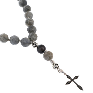 Четки православные из обсидиана "Крест" с родием и фианитом, Златоуст