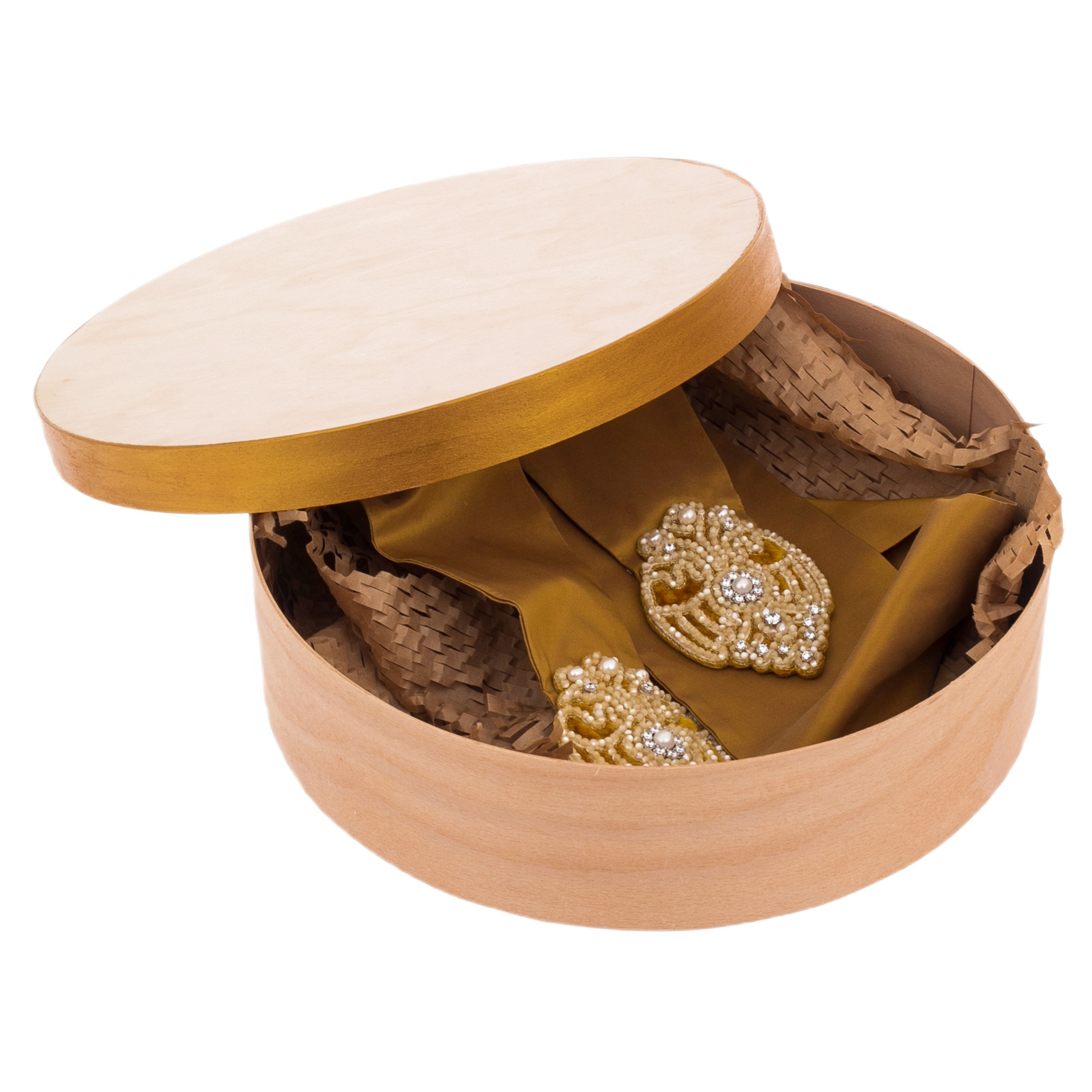 Великолепие аксессуара дополнено элегантной упаковкой — косник бережно уложен в деревянную шкатулку с природной текстурой. Этот формат хранения не только защищает драгоценную вышивку, но и превращает подарок в настоящую реликвию, достойную передаваться из поколения в поколение.