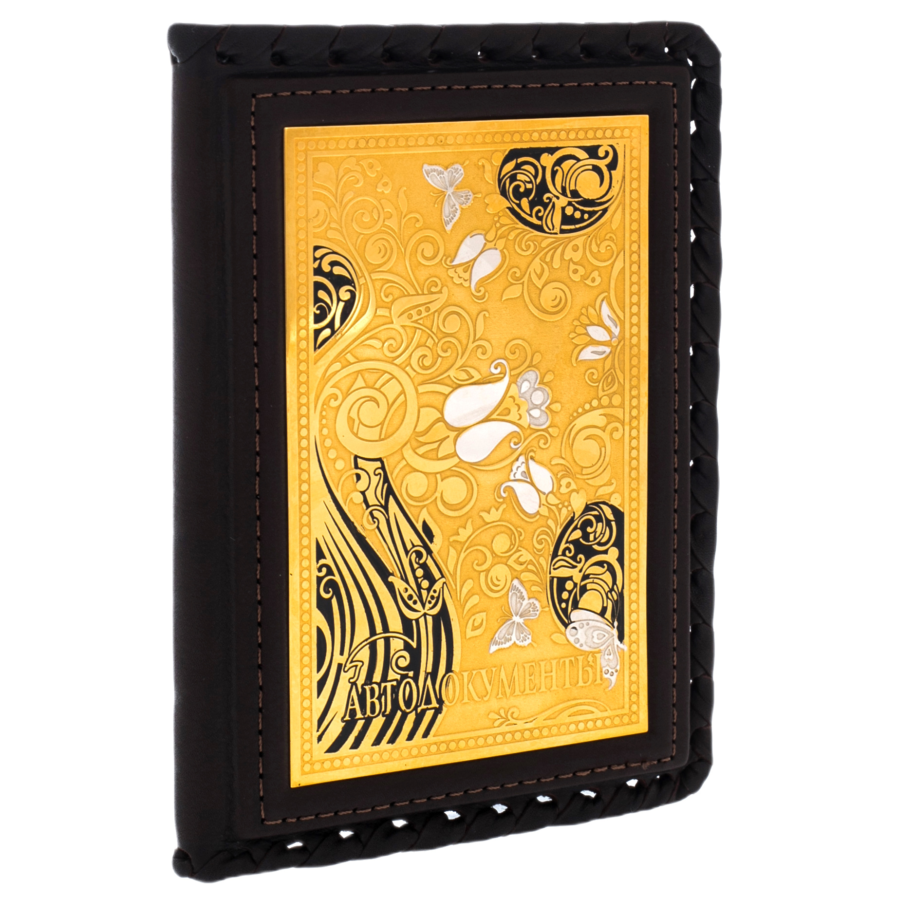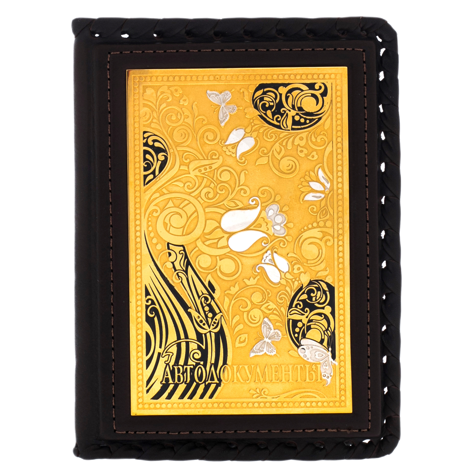 Кожаная обложка на автодокументы "Орнамент" Златоуст
