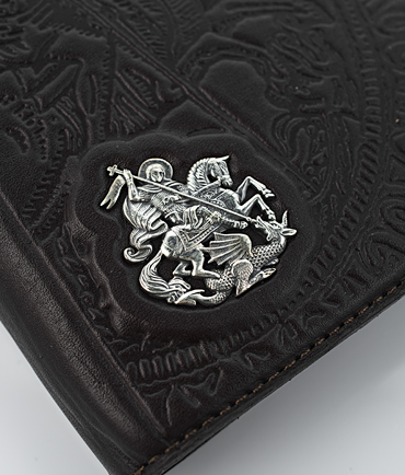 Обложка для документов "Георгий Великий" с серебряной накладкой