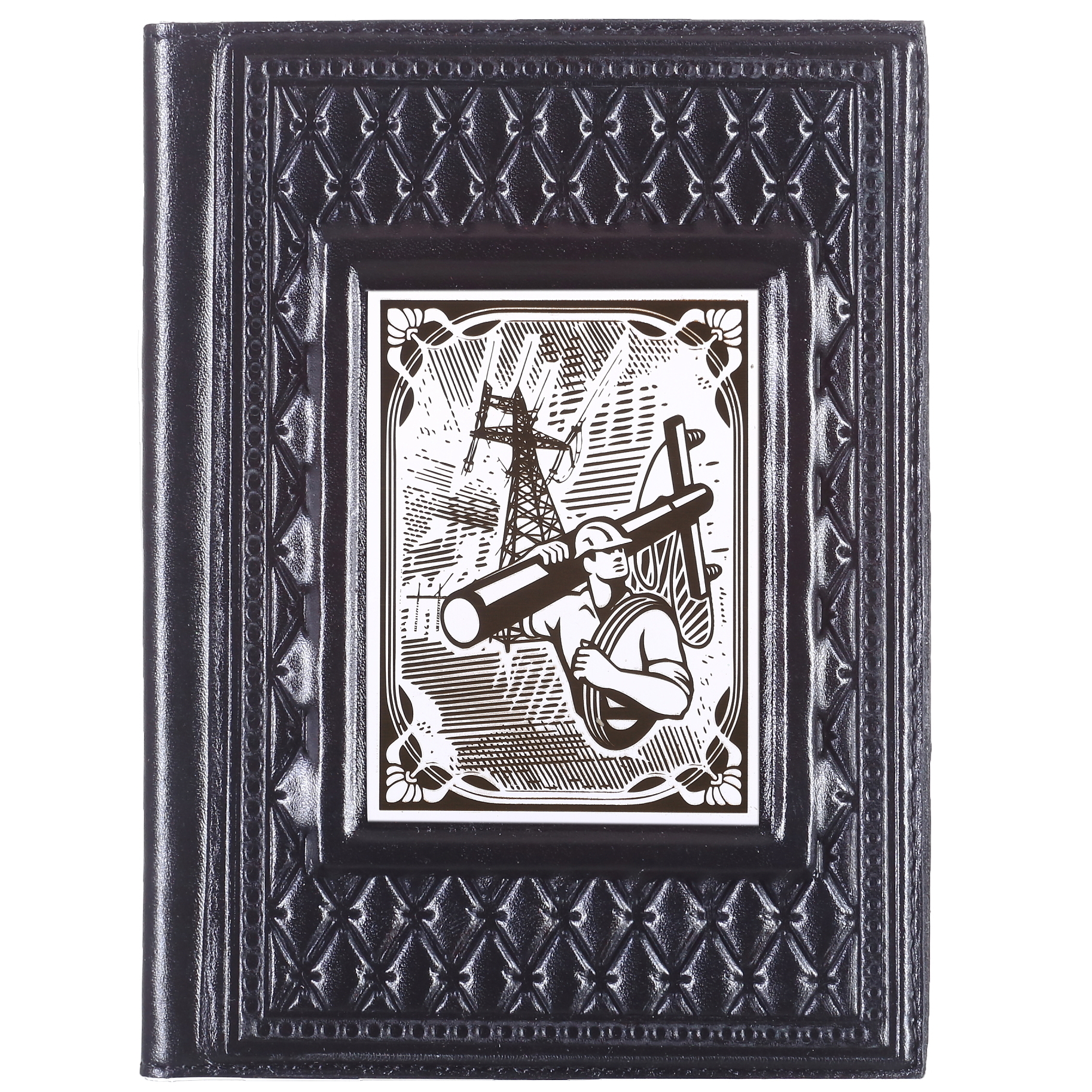 Обложка для паспорта в кожаном переплете "Энергетику-4" с накладкой, покрытой никелем
