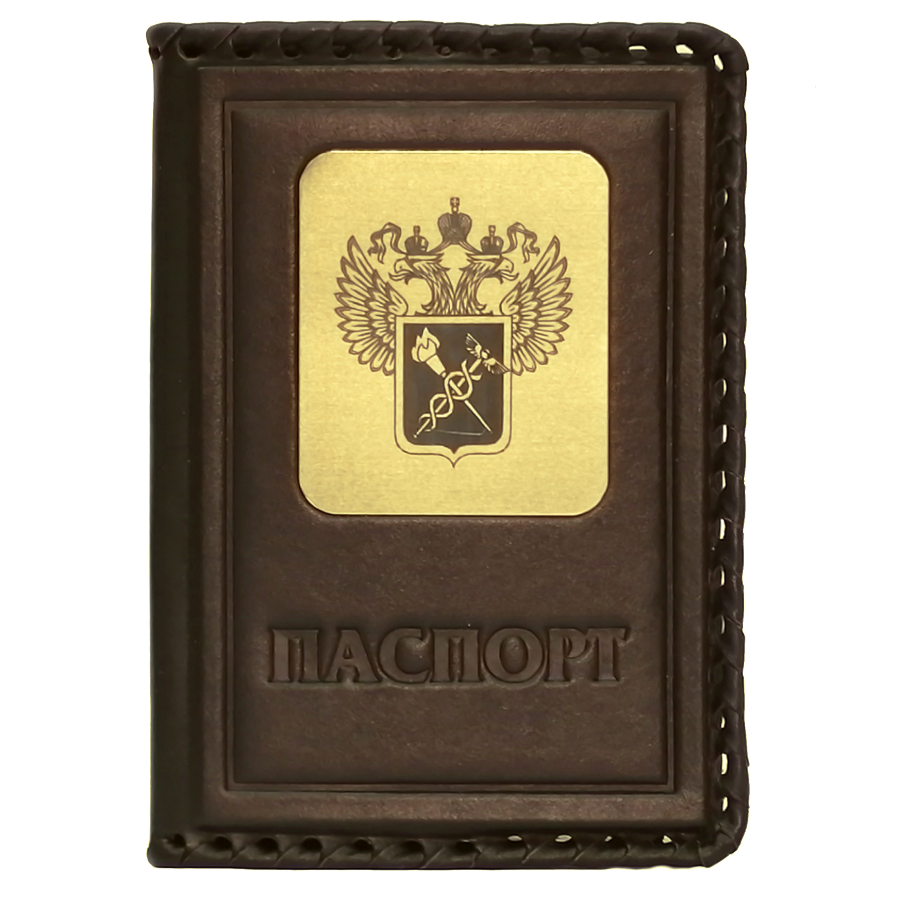 Обложка для паспорта в кожаном переплете "Таможня" коричневая