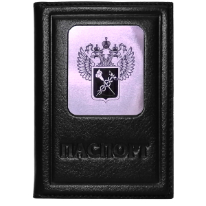 Обложка на паспорт в кожаном переплете "Герб таможни" черная