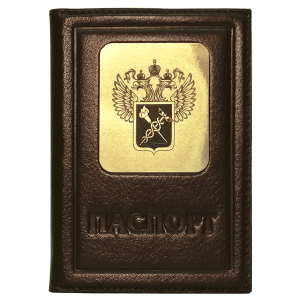 Обложка на паспорт в кожаном переплете "Герб таможни" коричневая