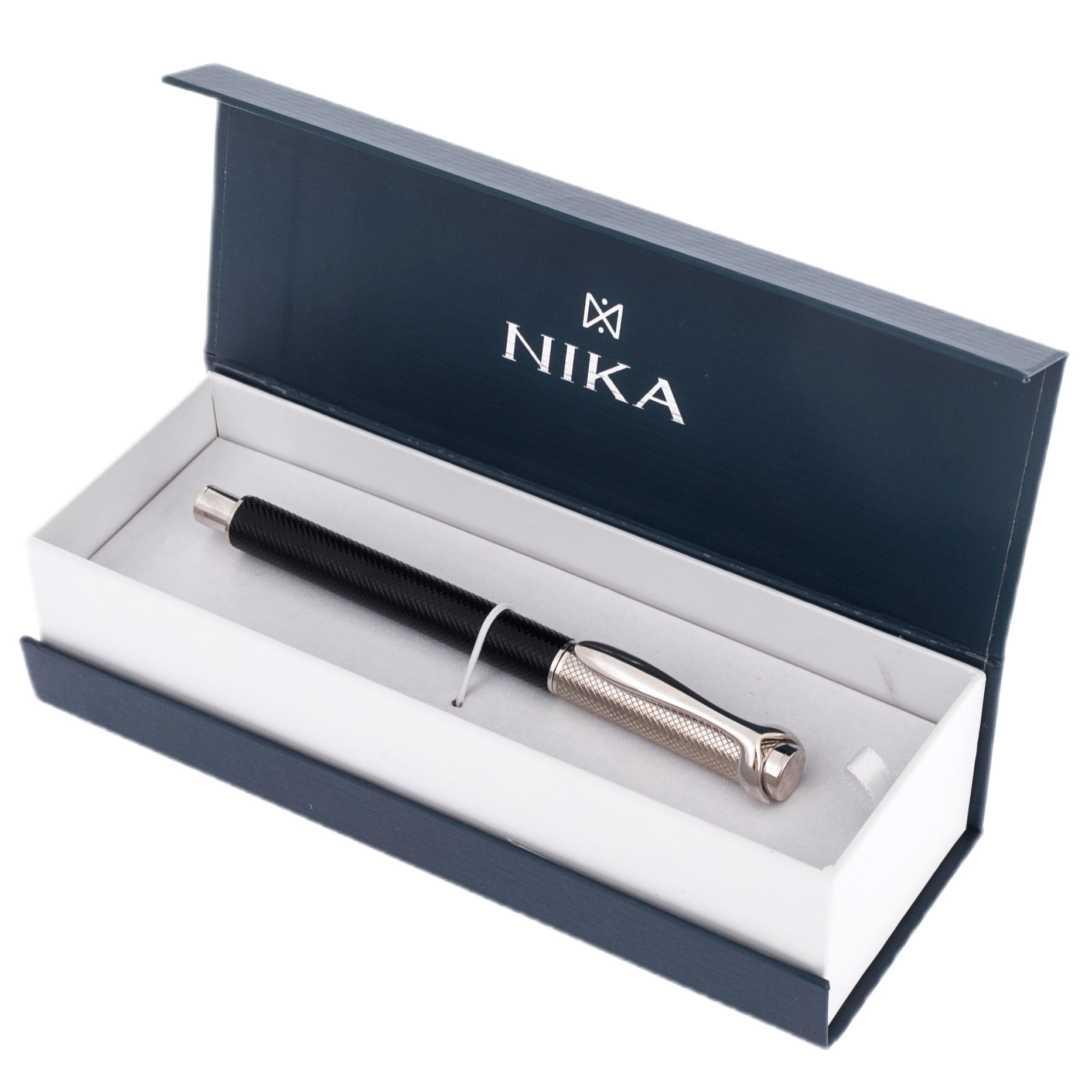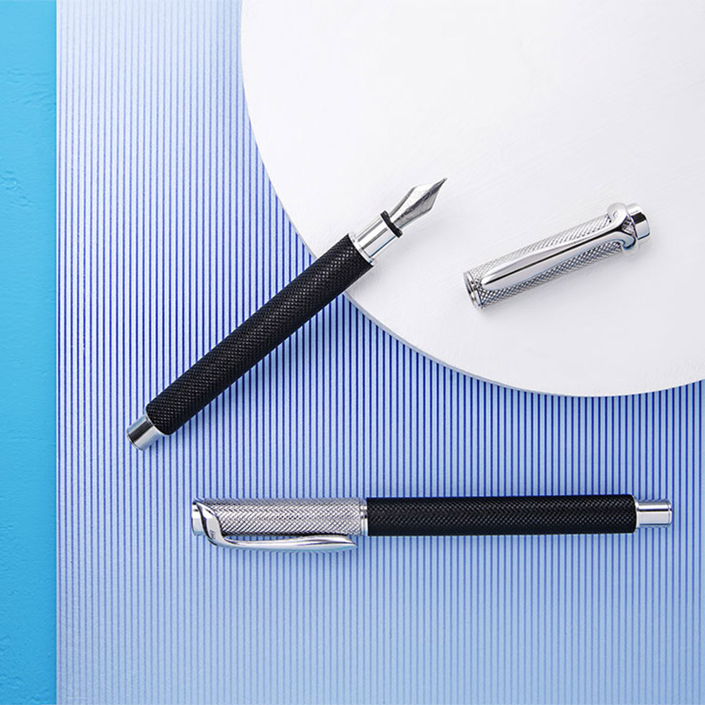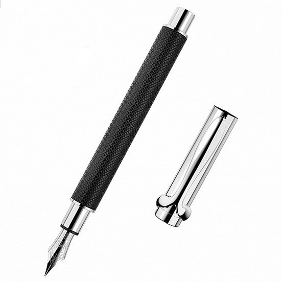 Перьевая ручка из серебра и латуни "Status" черно-серебряная