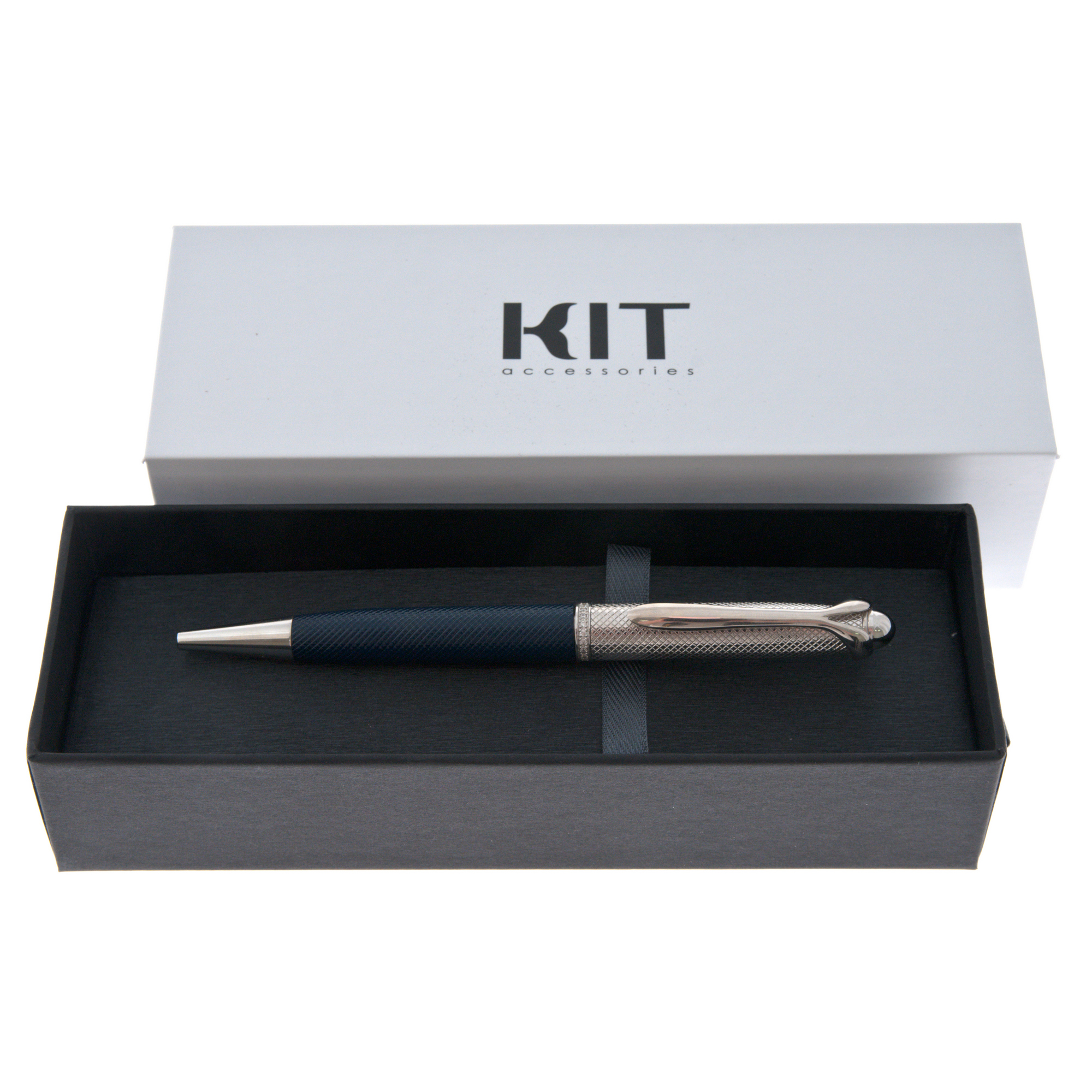 Ручка-роллер серебристо-синяя с фианитами (Kit Day)