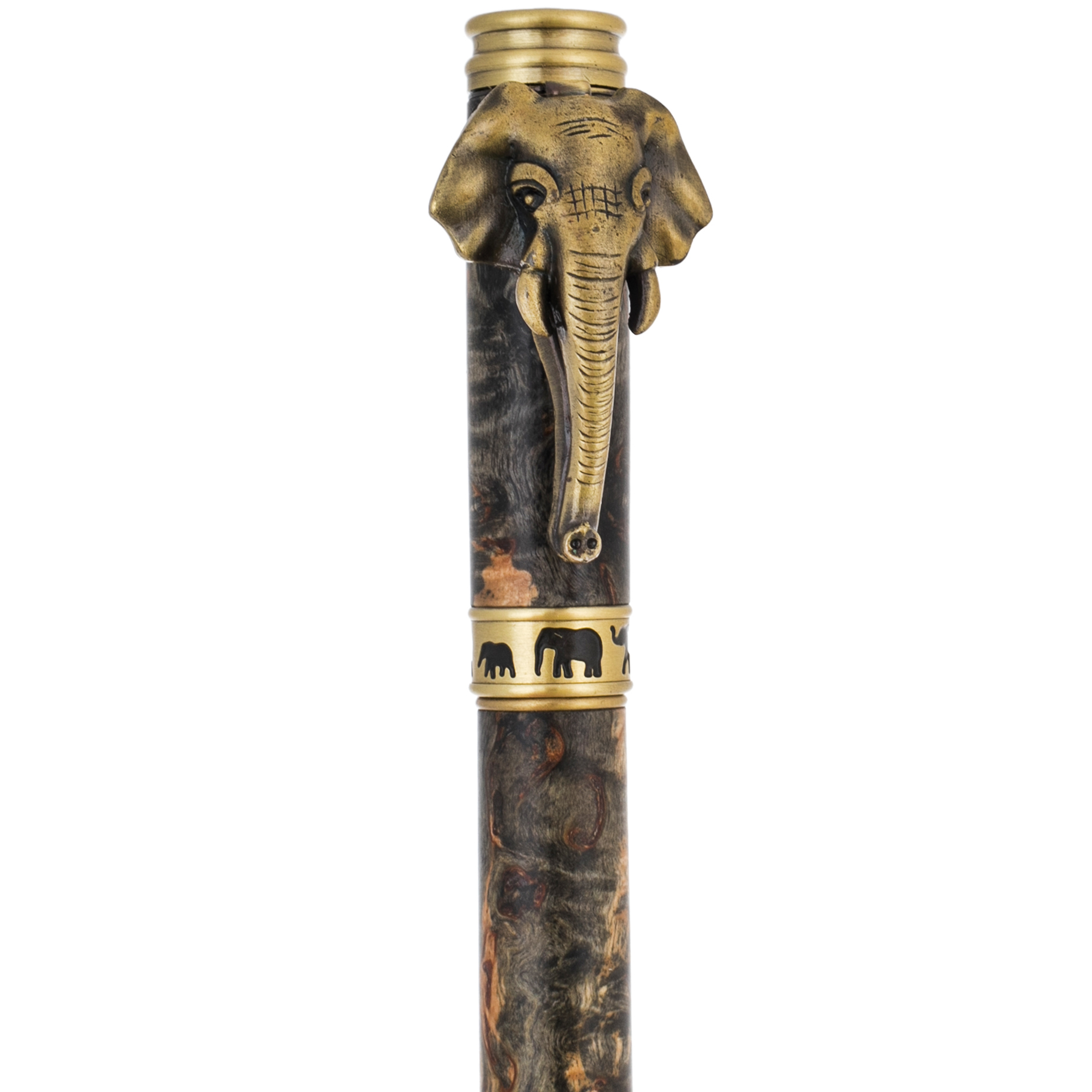 Металлические элементы выполнены в благородных оттенках античной бронзы с художественным литьём. Благодаря такому оформлению ручка гармонично сочетает природную энергию дерева и монументальность металла, превращаясь в настоящее произведение прикладного искусства.