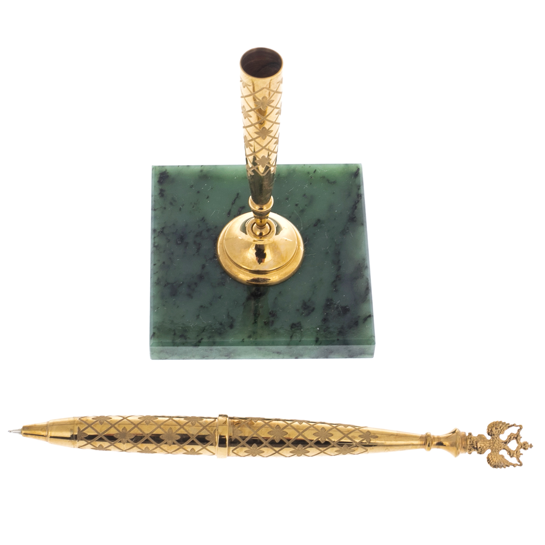 Ручка "Герб РФ" на подставке из нефрита, Златоуст
