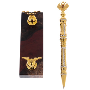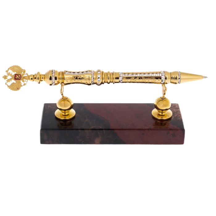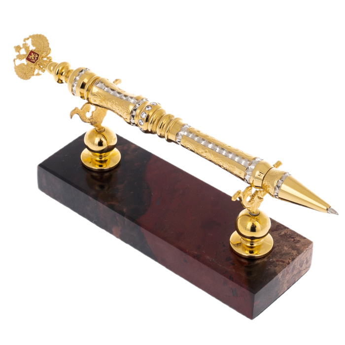 Ручка подарочная "Герб РФ" на подставке из яшмы, Златоуст