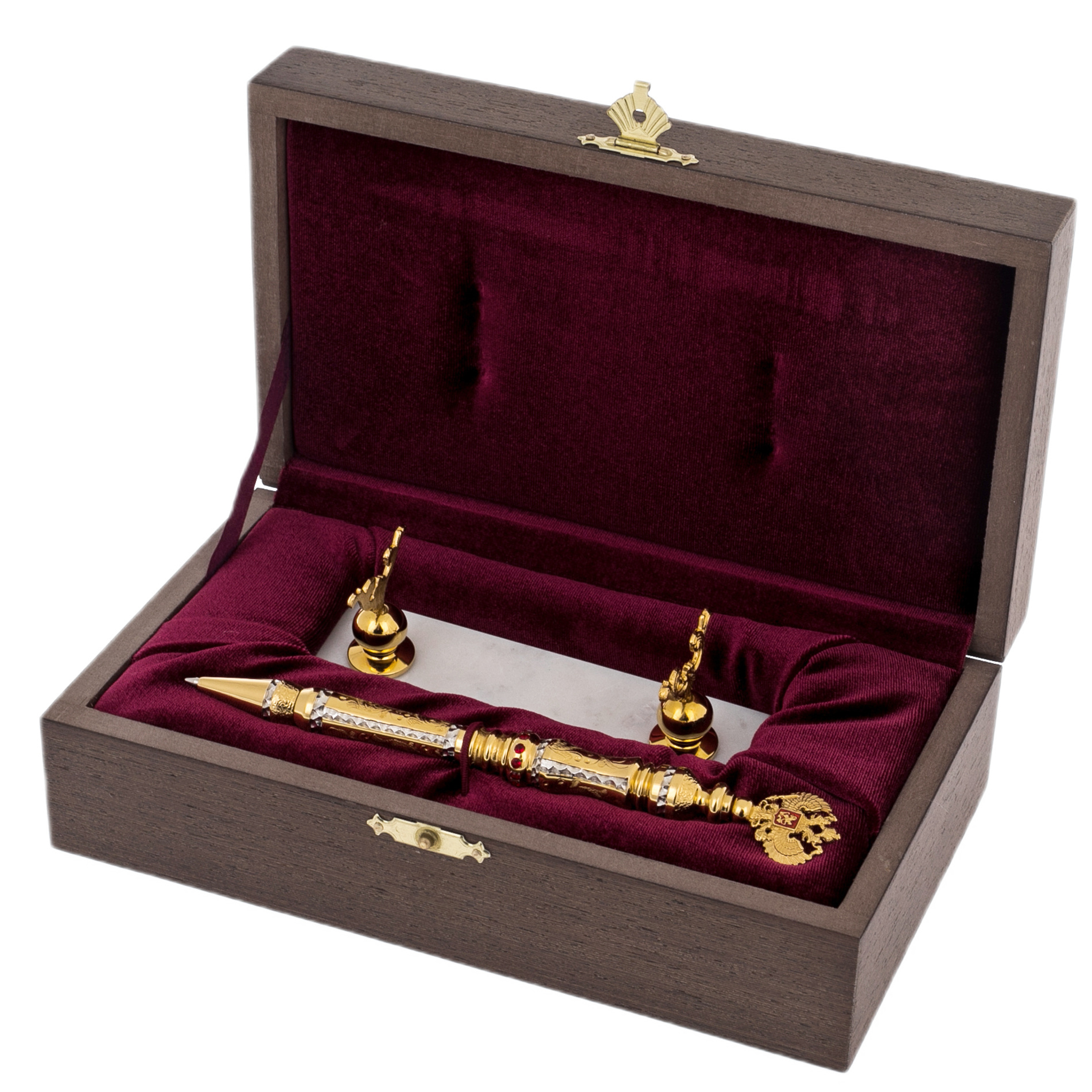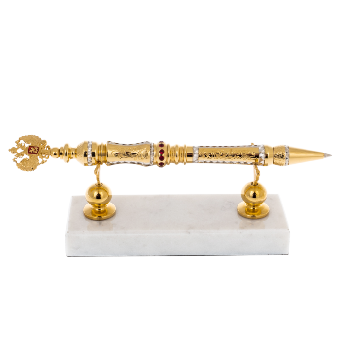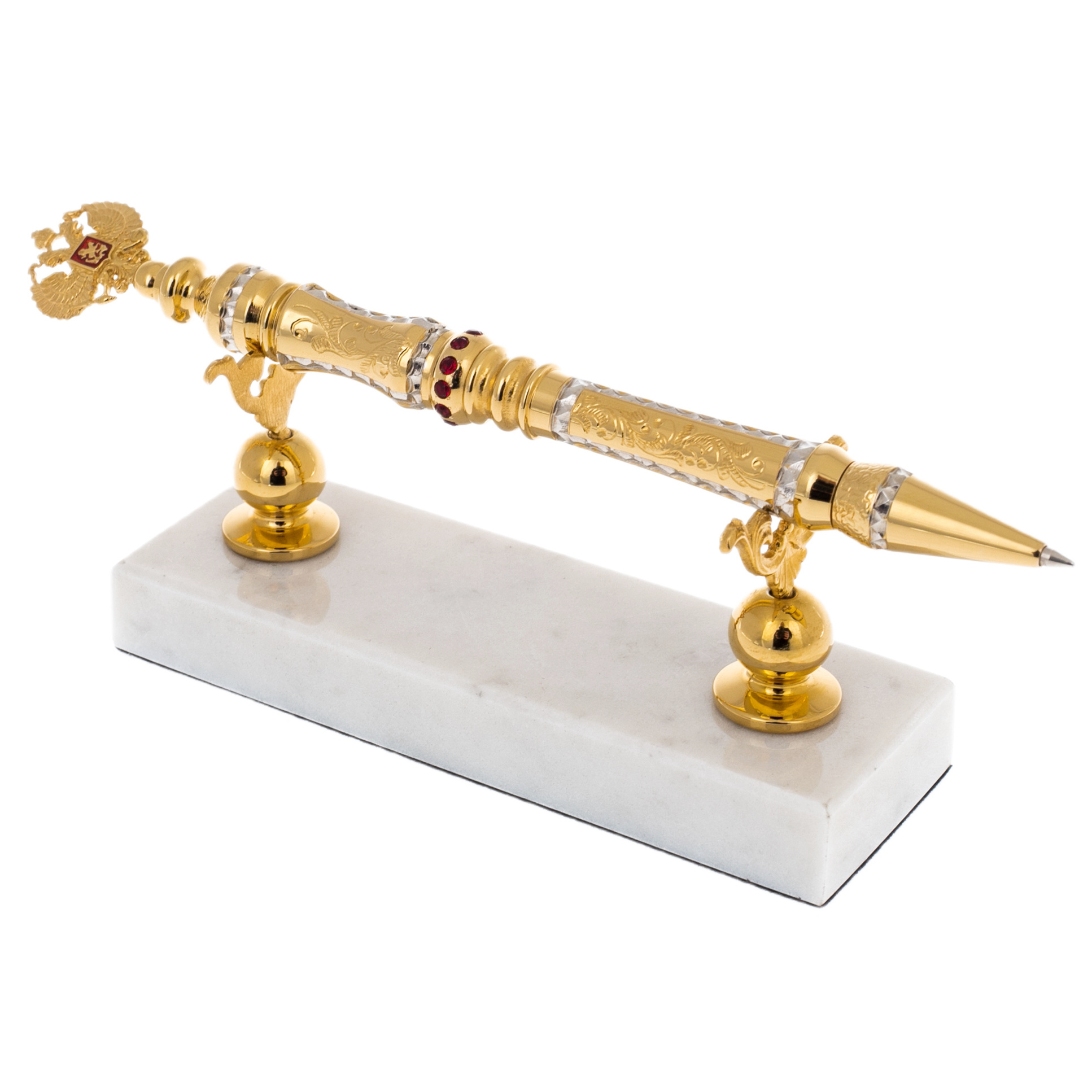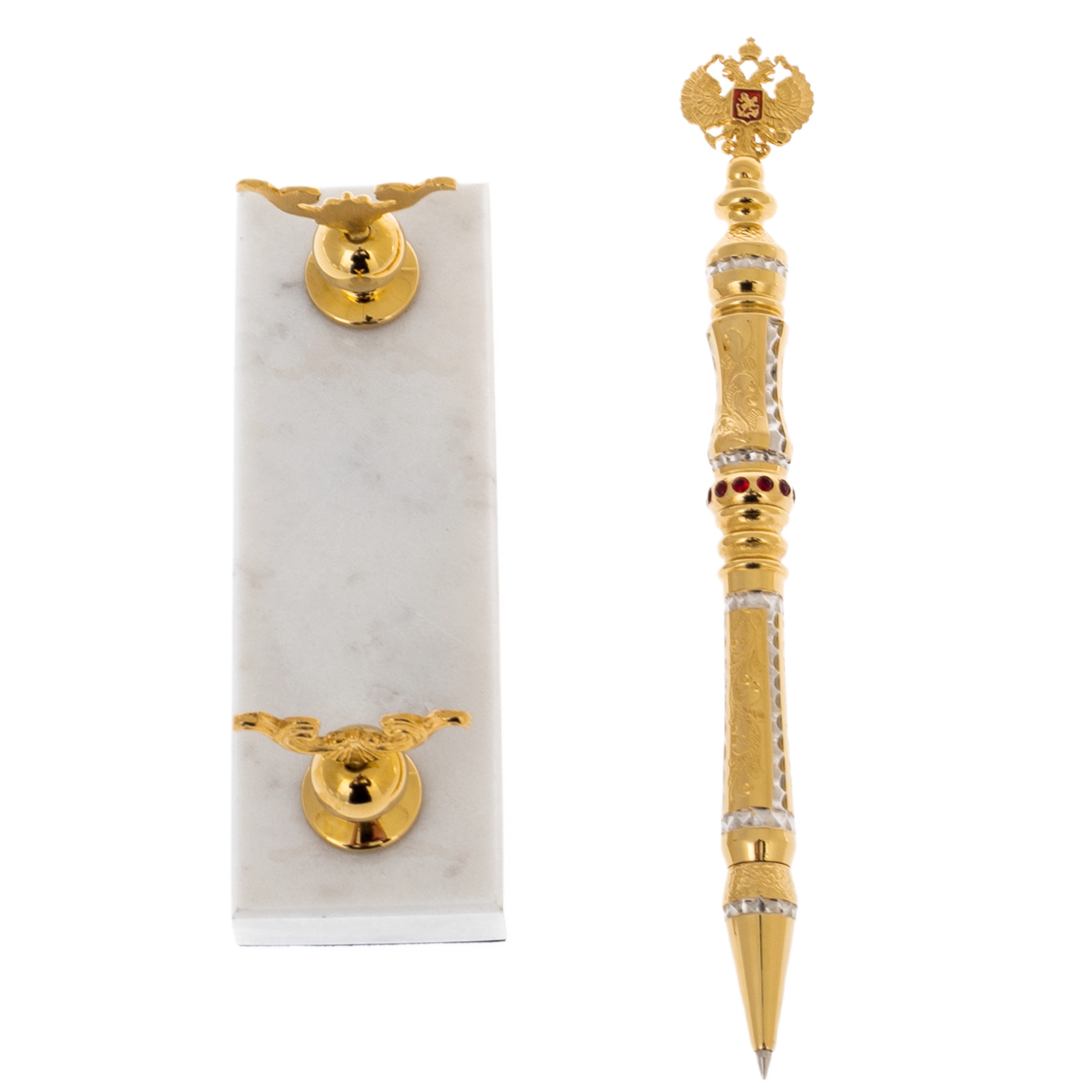 Ручка подарочная "Герб РФ" на подставке из мрамора, Златоуст