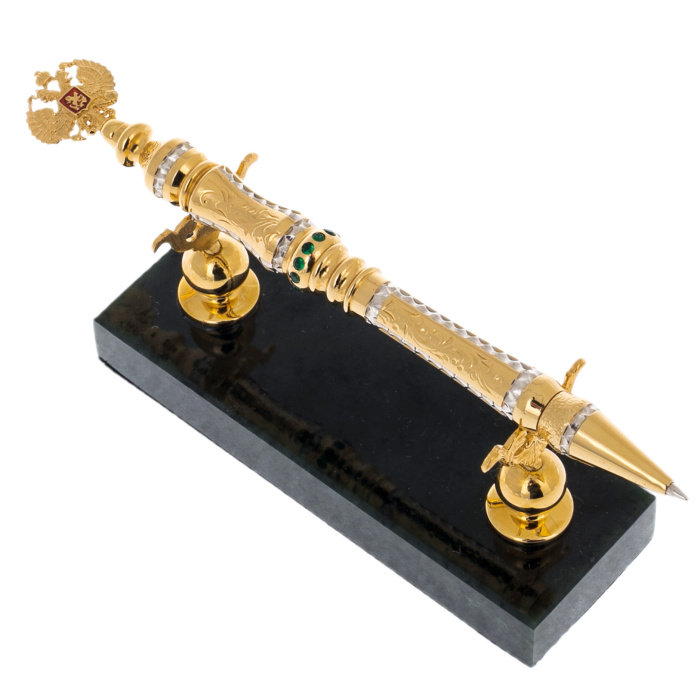 Ручка подарочная "Герб РФ" на подставке из нефрита, Златоуст