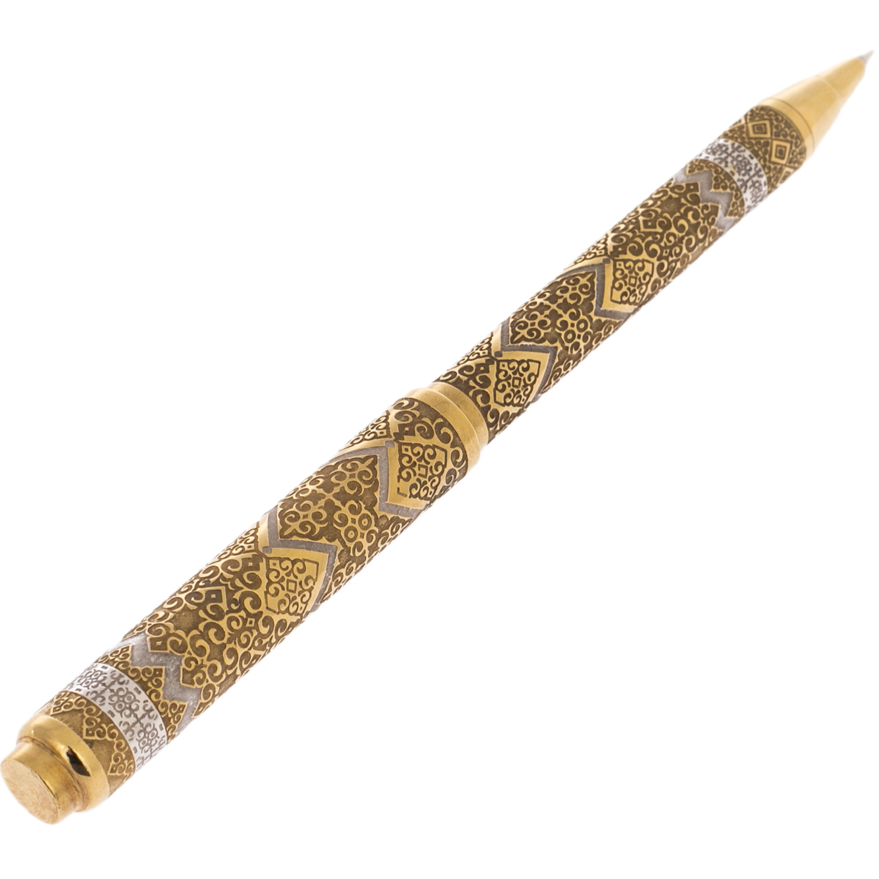 Золотое напыление на ручке, словно солнечные лучи, пронизывающие океан, освещает путь к новым горизонтам, а каждая деталь тонкой гравировки — как символ незыблемого вкуса и внимания к деталям. Когда эта ручка оказывается в руке, каждый её штрих – это шаг к новым вершинам, каждое движение – стремление к совершенству.