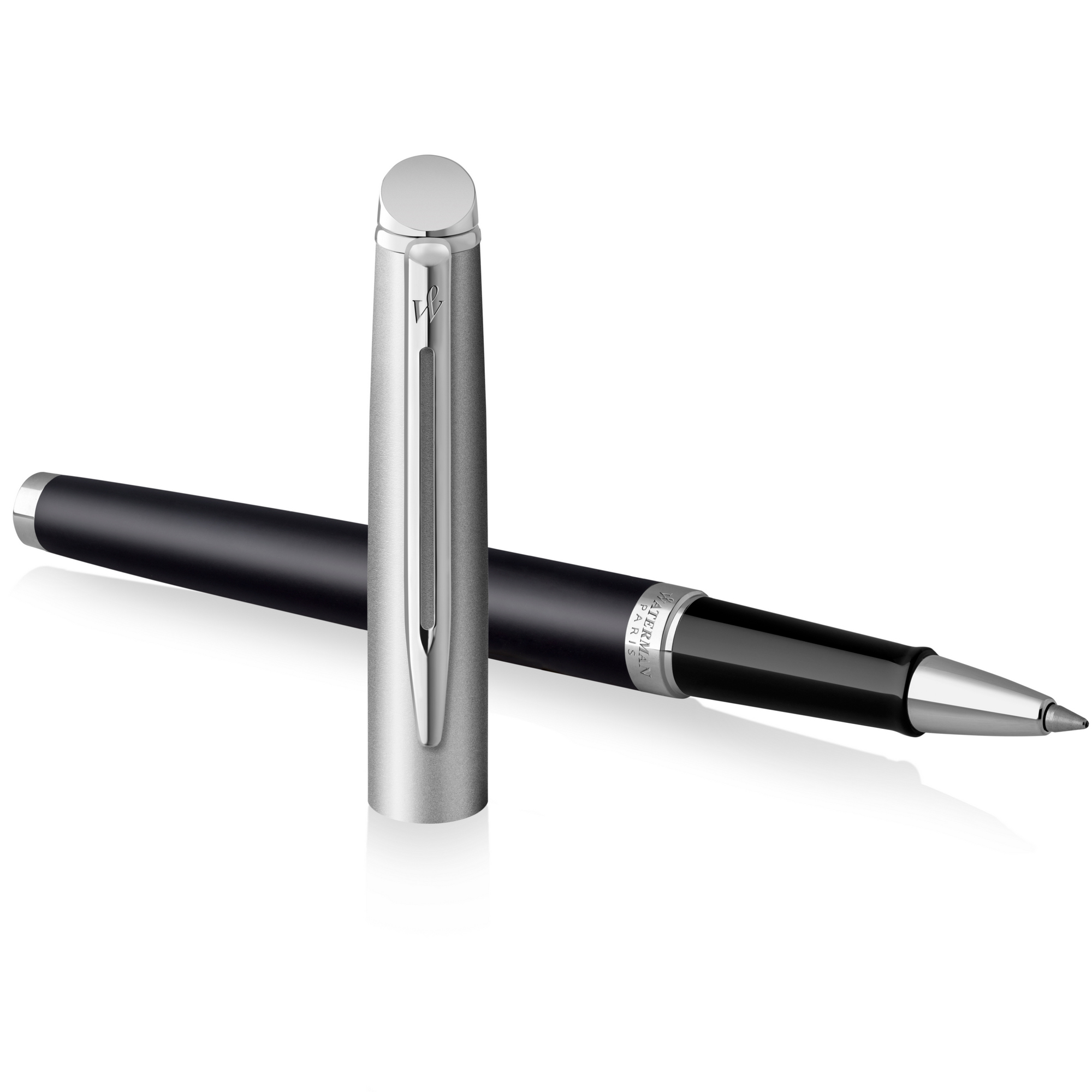 Ручка-роллер Waterman Hemisphere Entry Point Stainless Steel with Black Lacquer в подарочной упаковке.