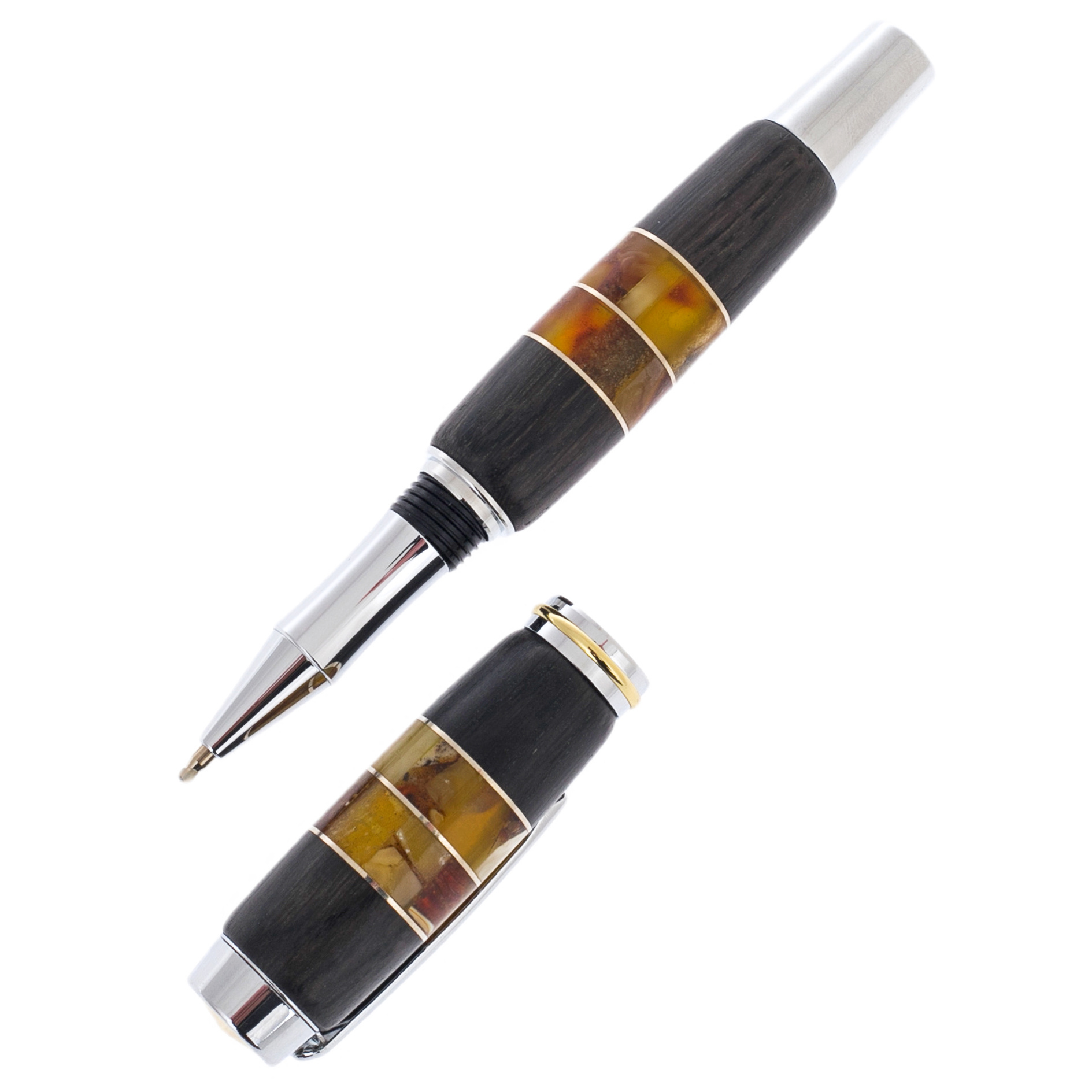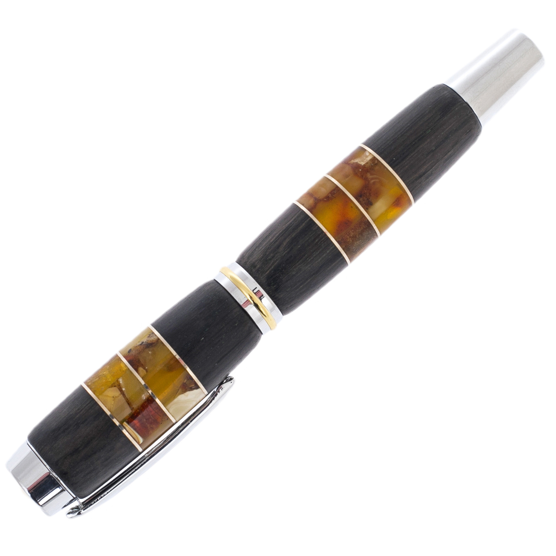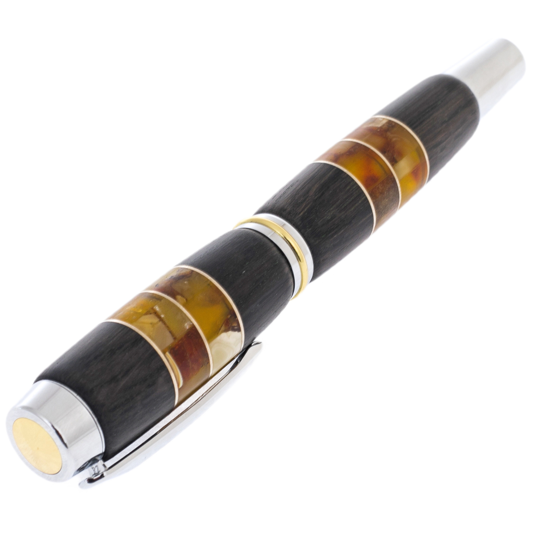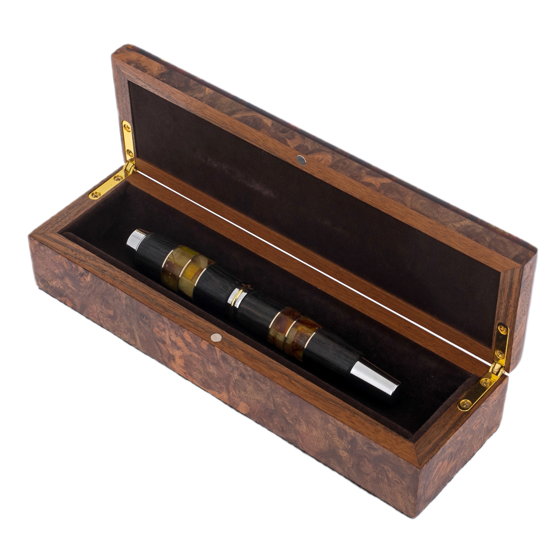 Ручка шариковая из дерева и янтаря "Классика" в футляре из корня ореха
