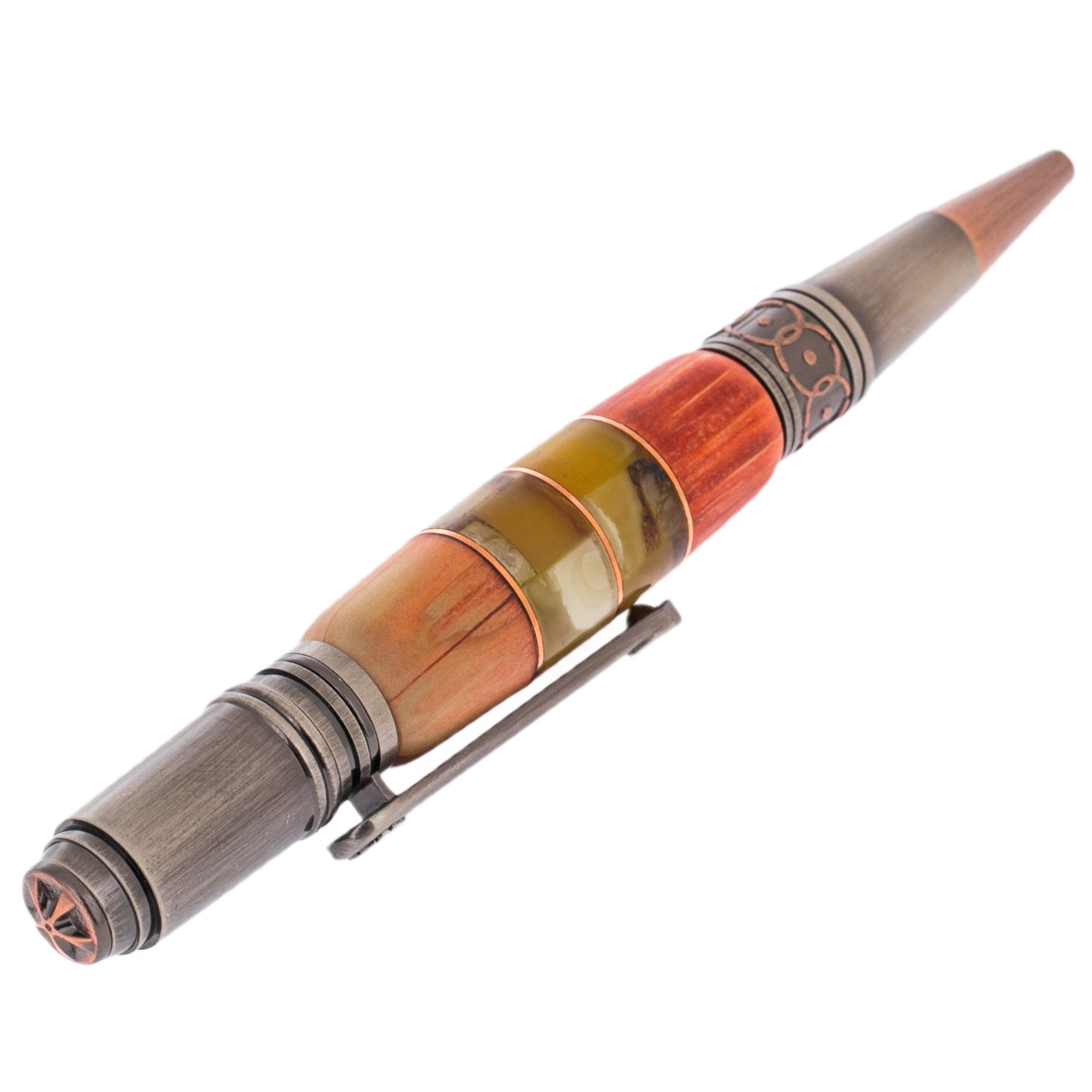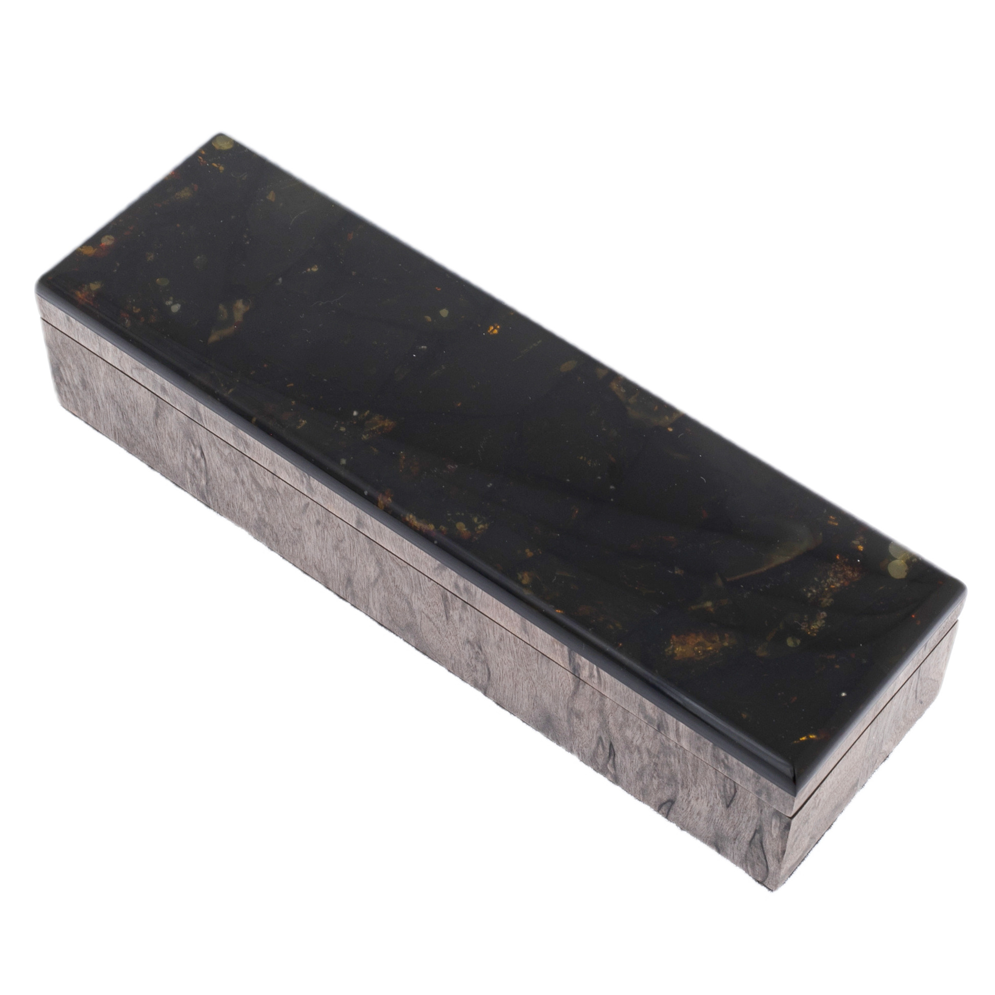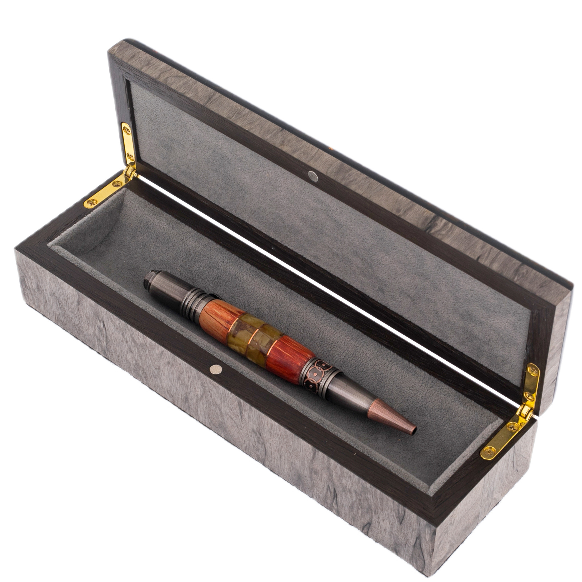 Ручка шариковая из карельской березы и янтаря "Цветок" в футляре из тонированной карельской березы