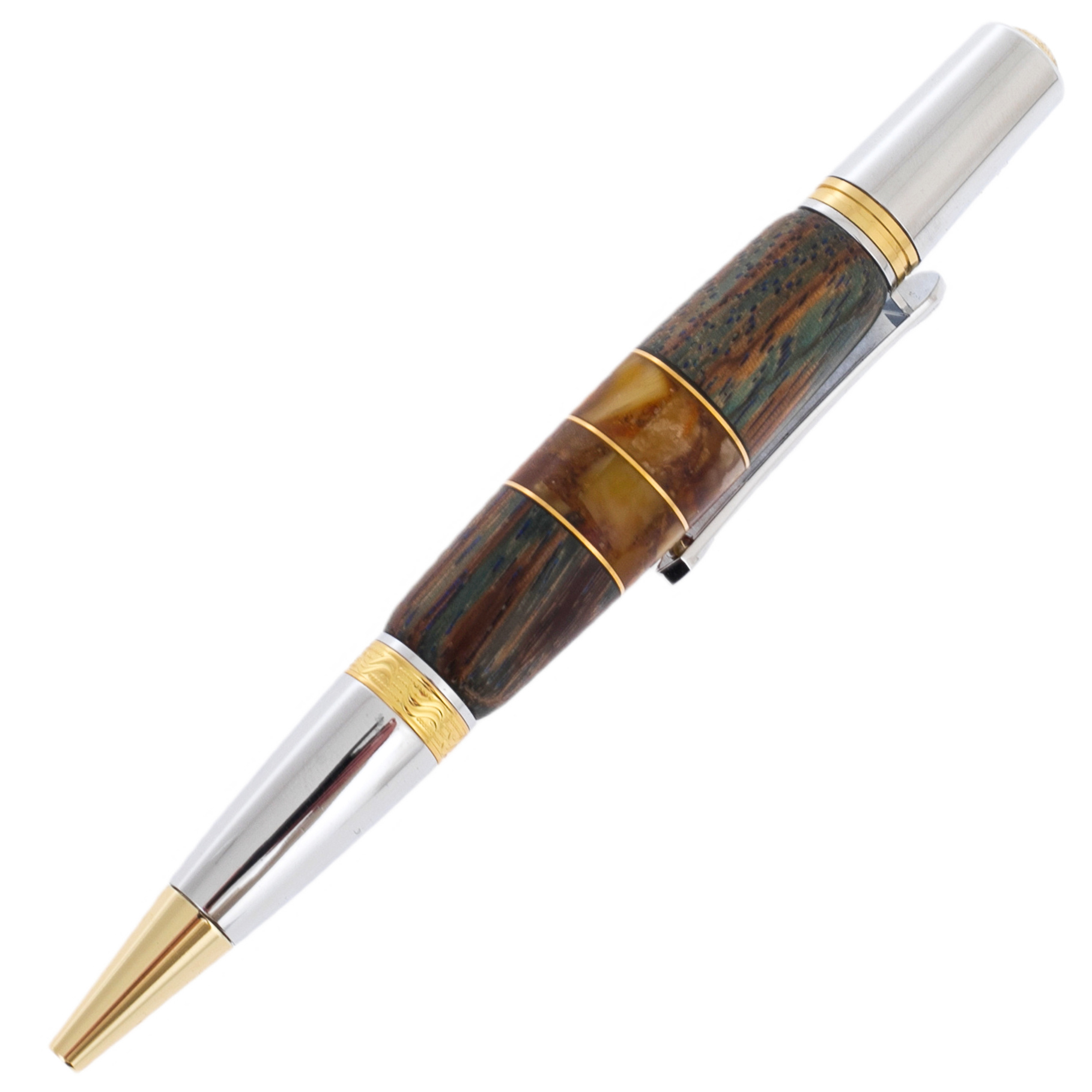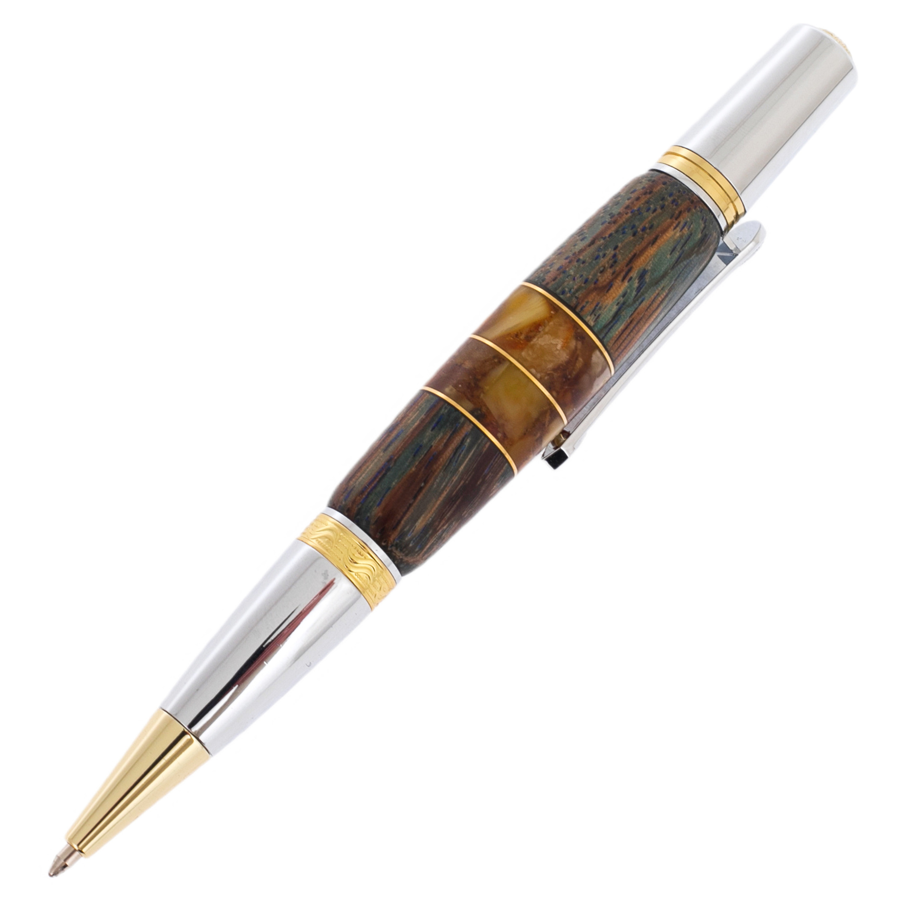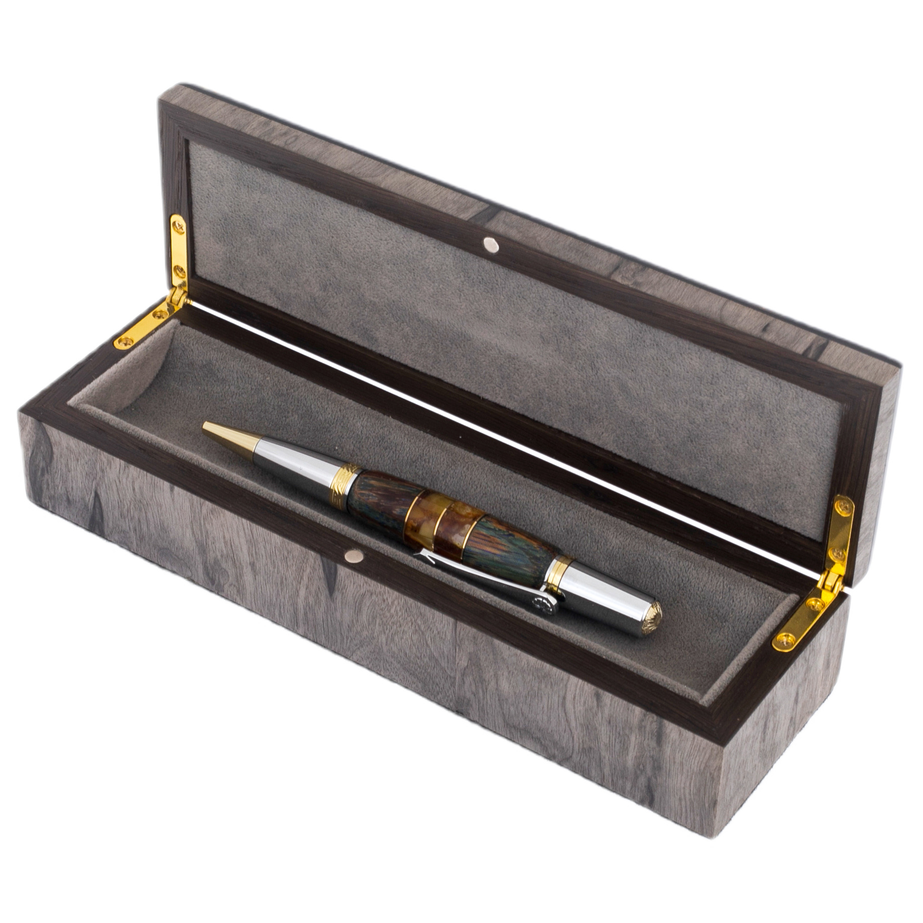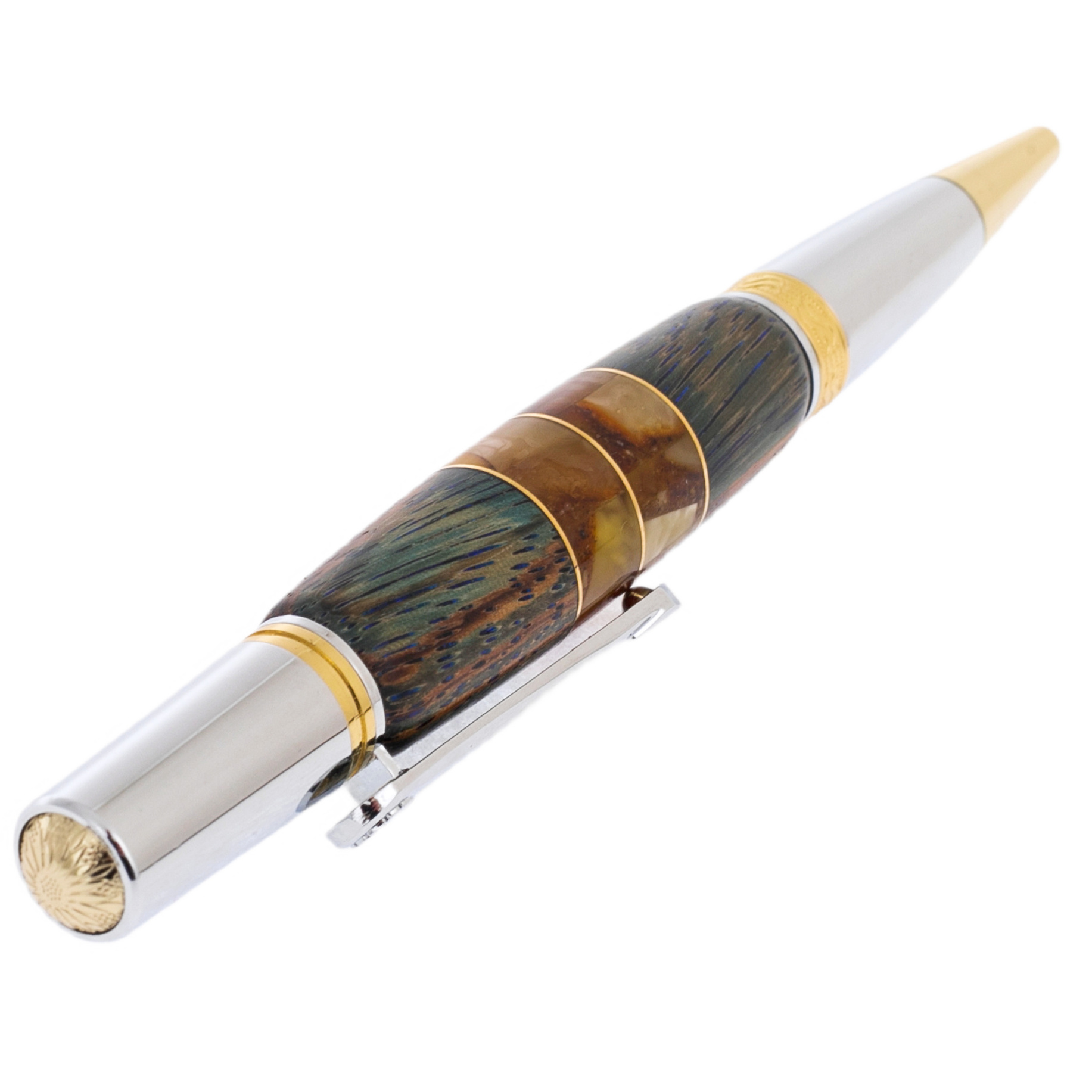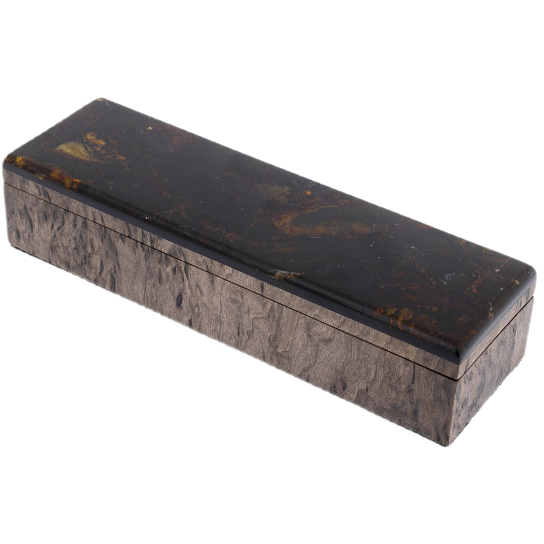 Ручка шариковая из карельской березы и янтаря "Цветок" в футляре