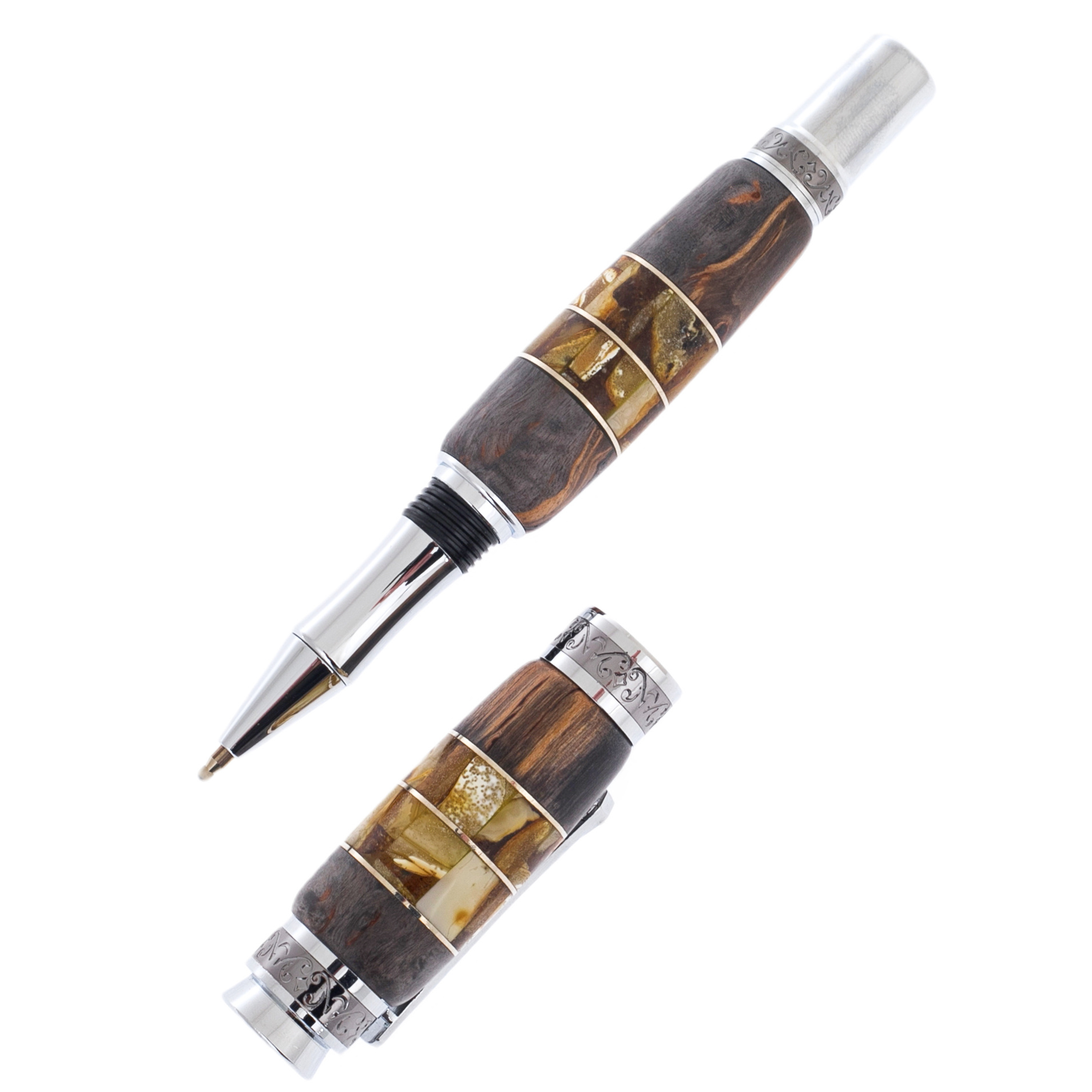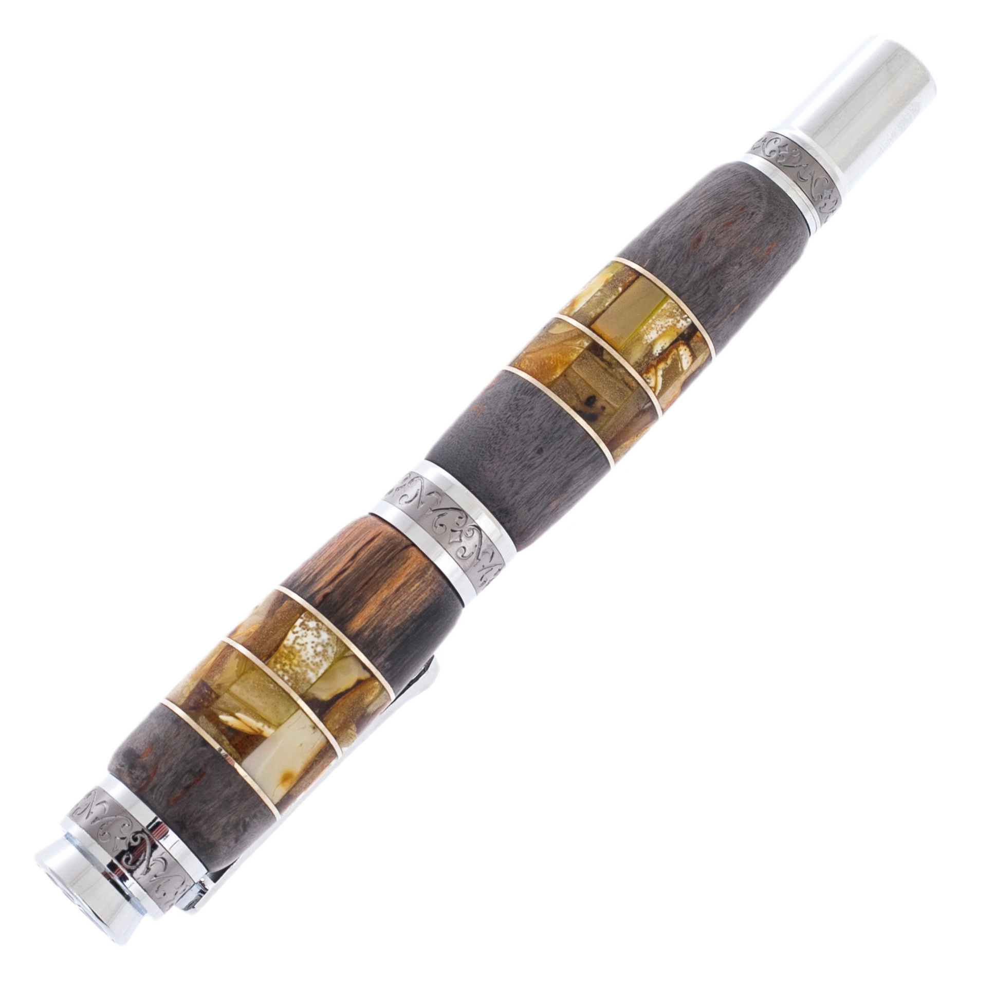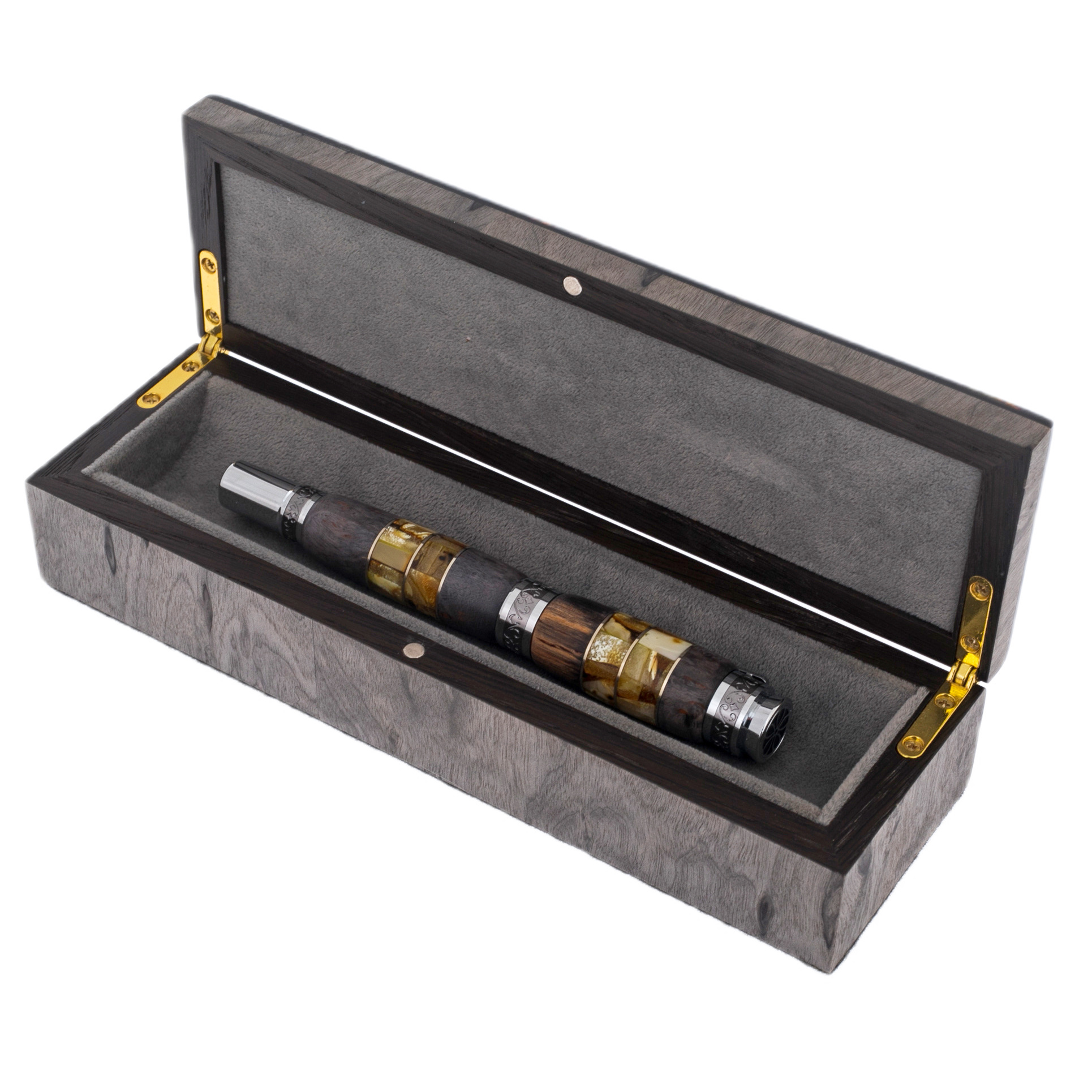 Ручка шариковая из карельской березы и янтаря "Классика" в футляре
