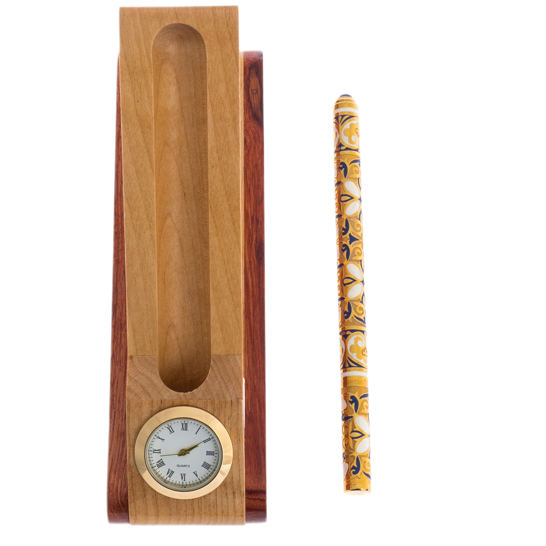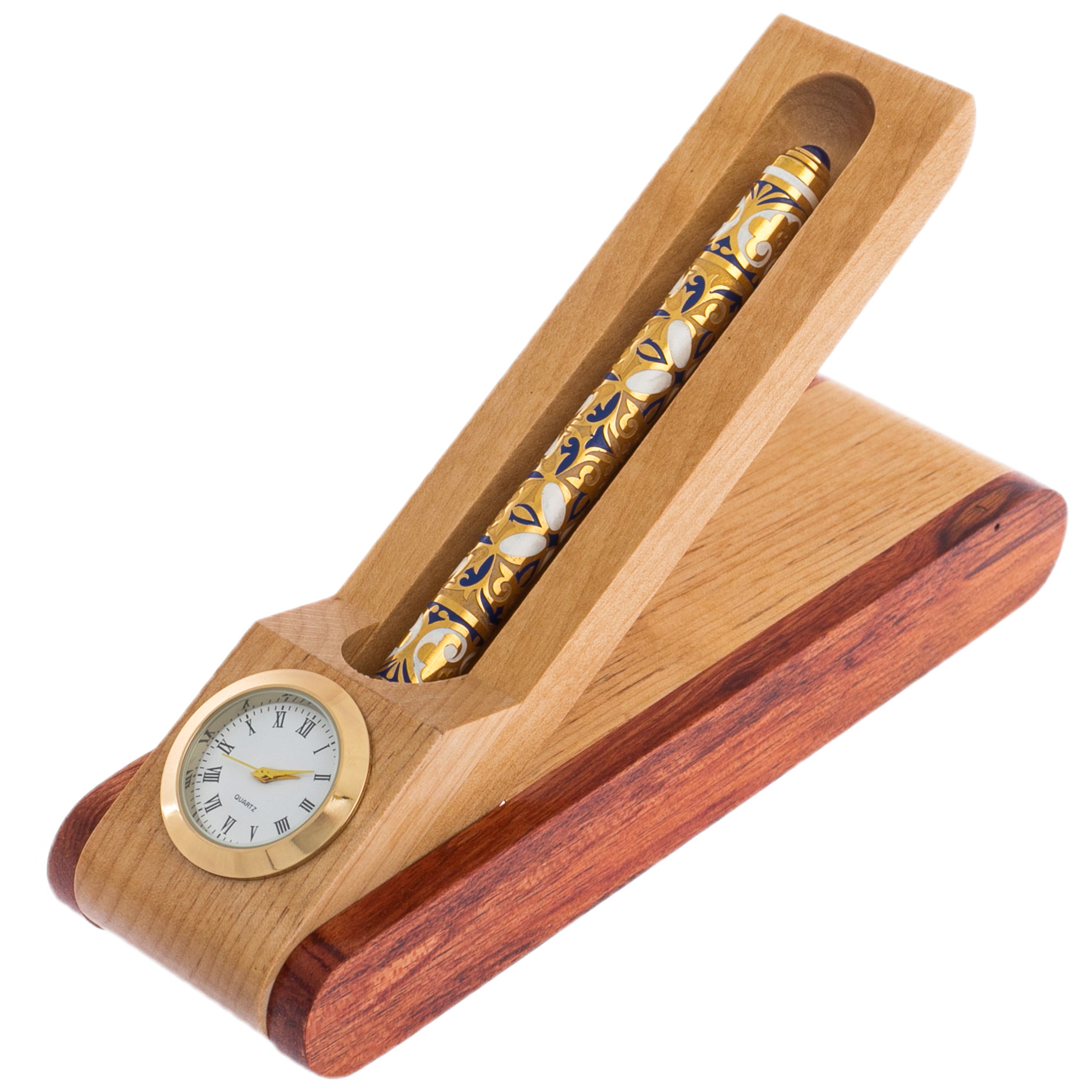 Ручка в шкатулке-подставке "Орнамент" с часами, Златоуст