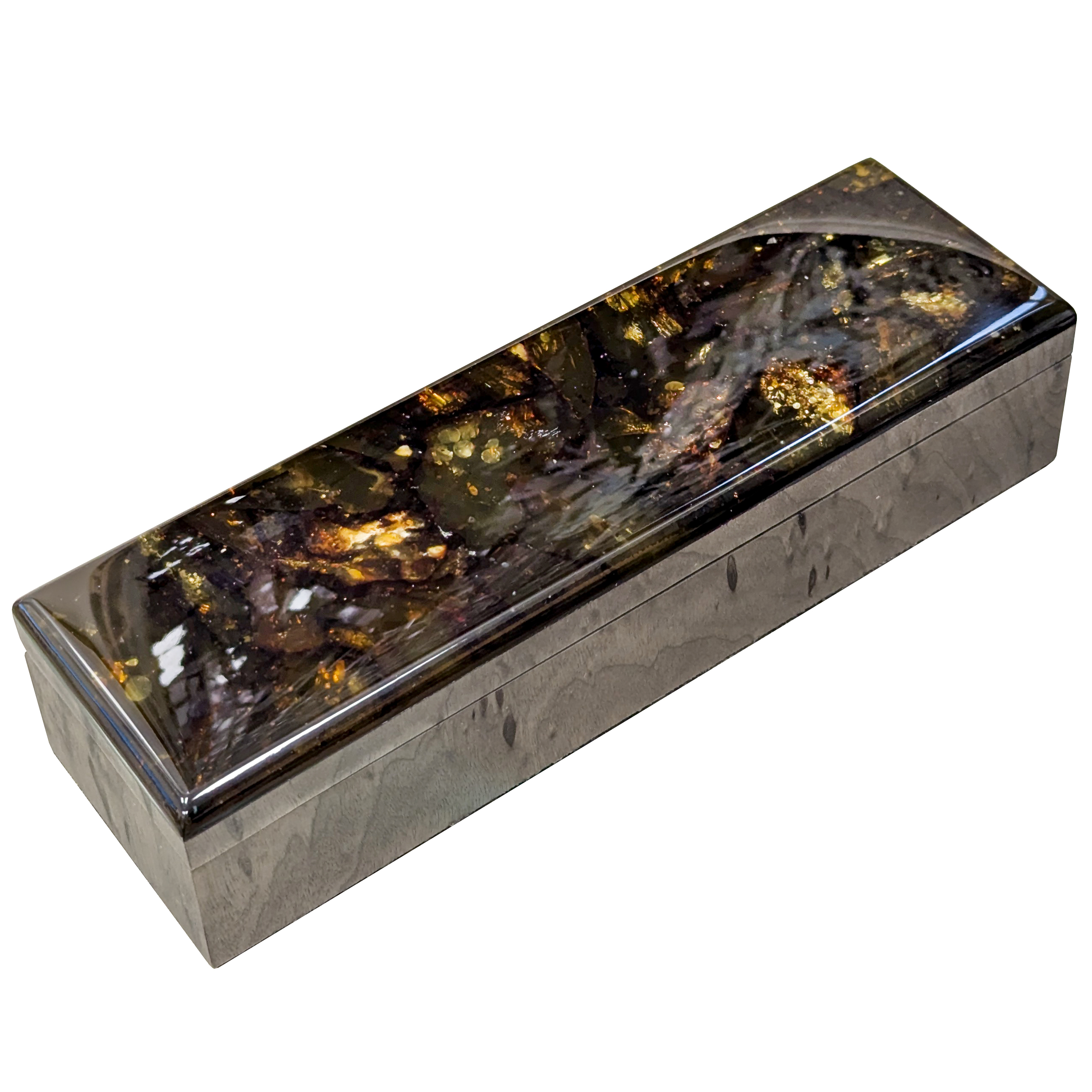 Материалы: тонированная карельская береза, янтарь.