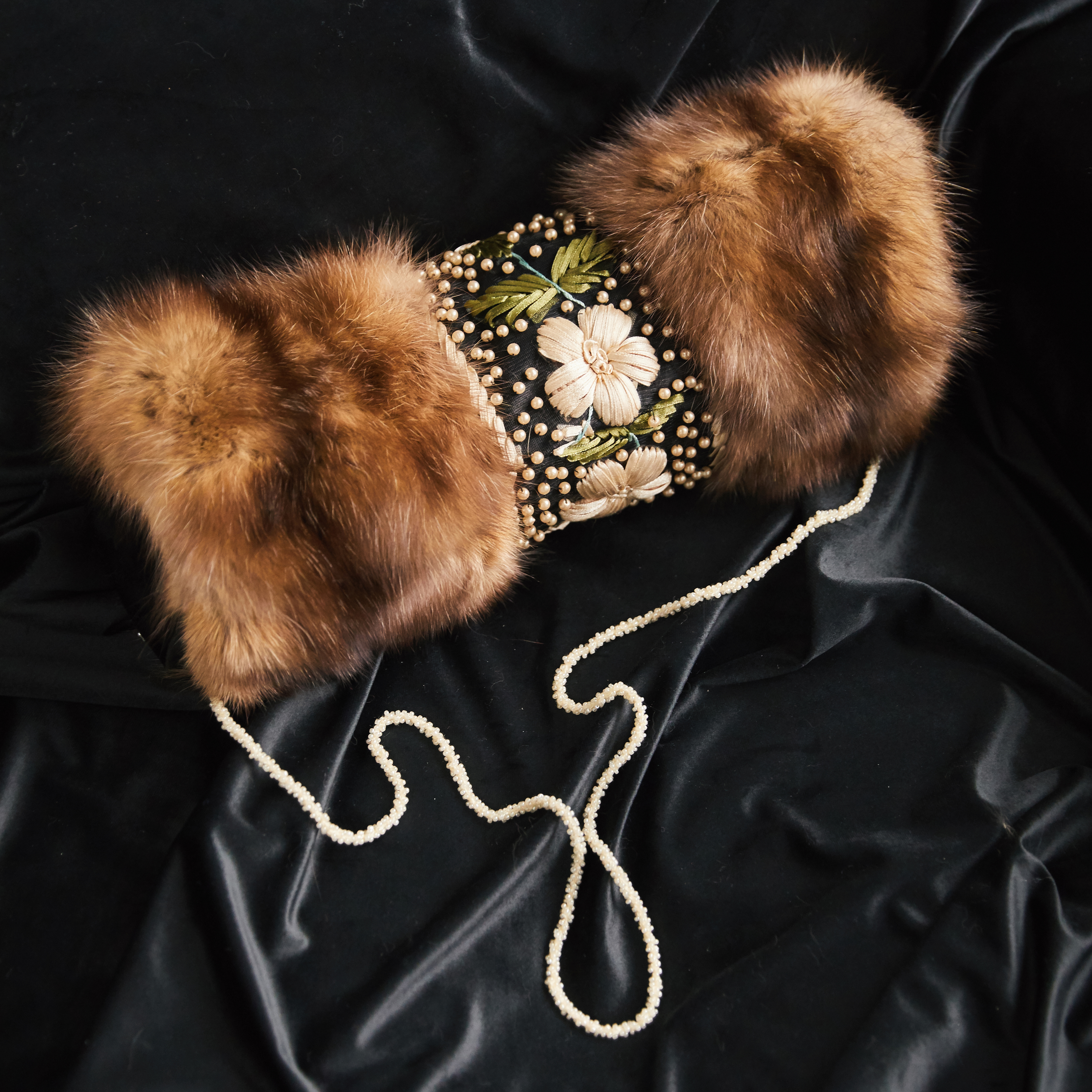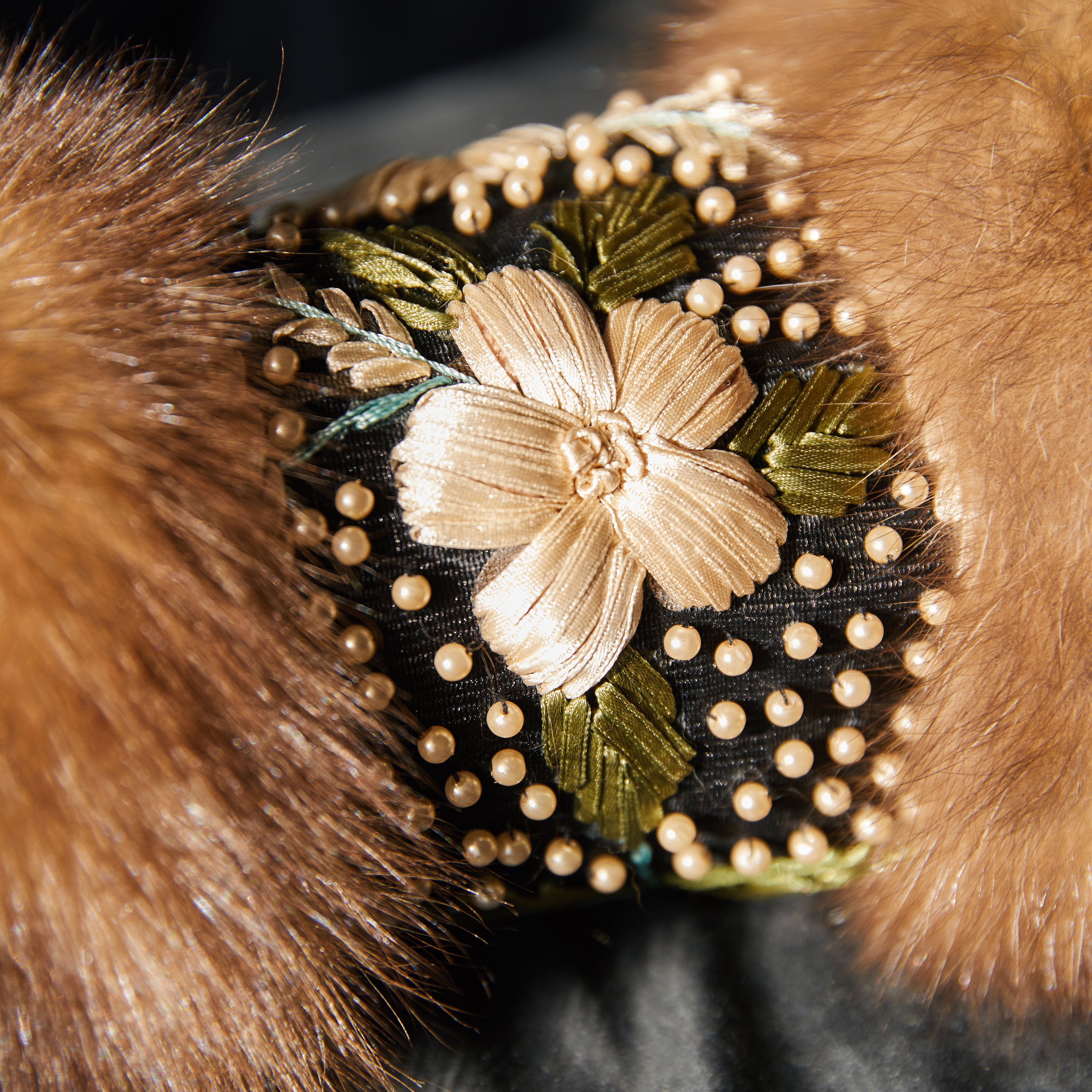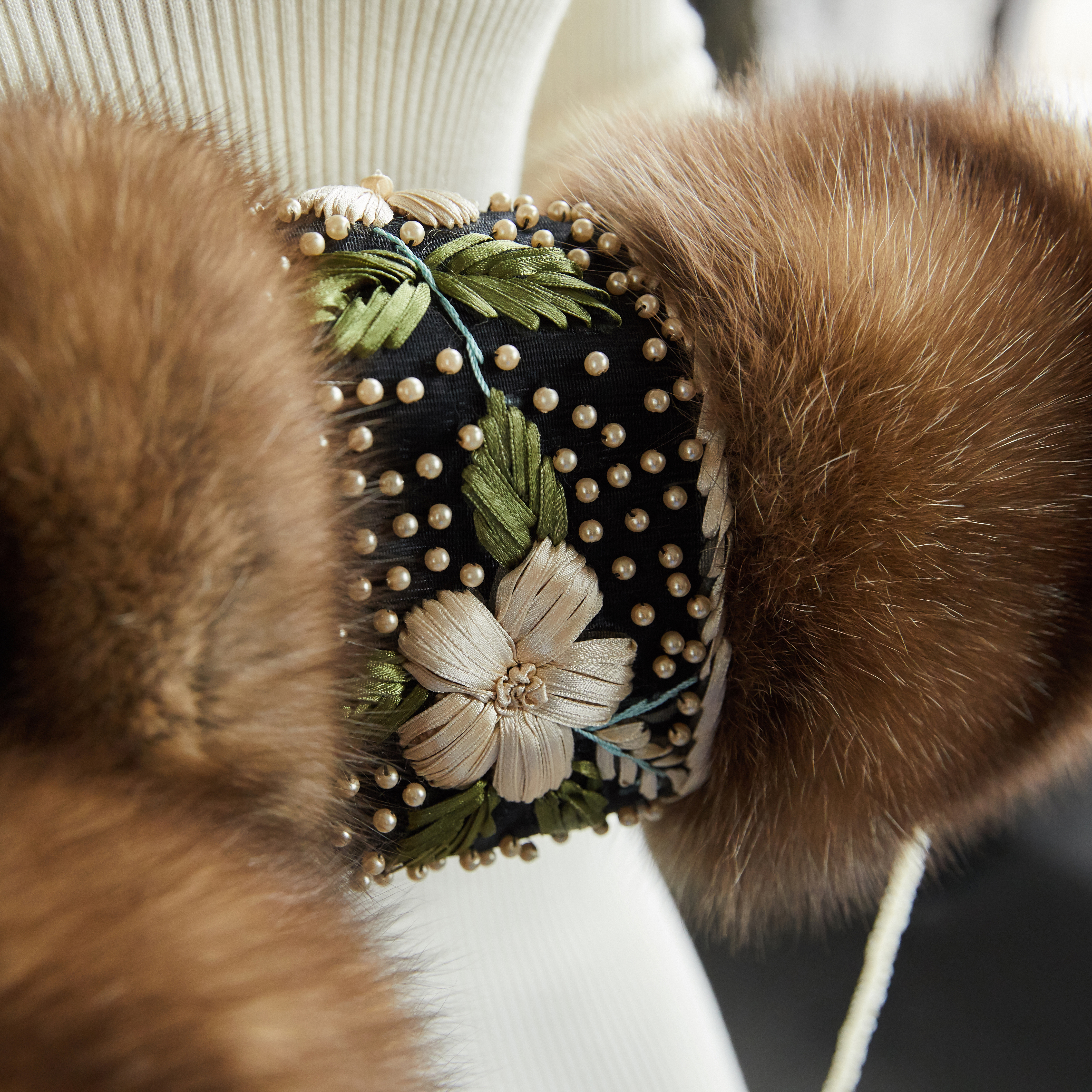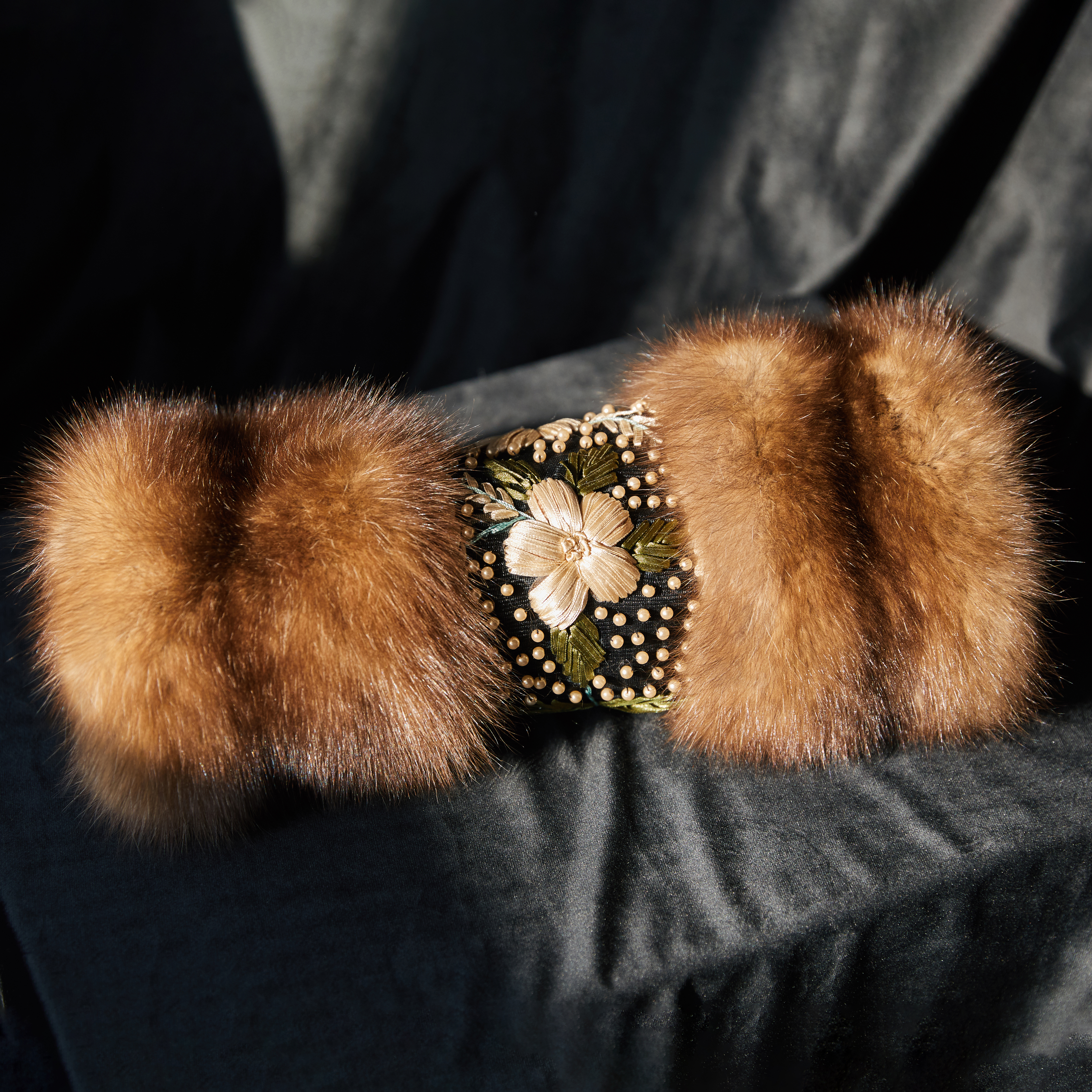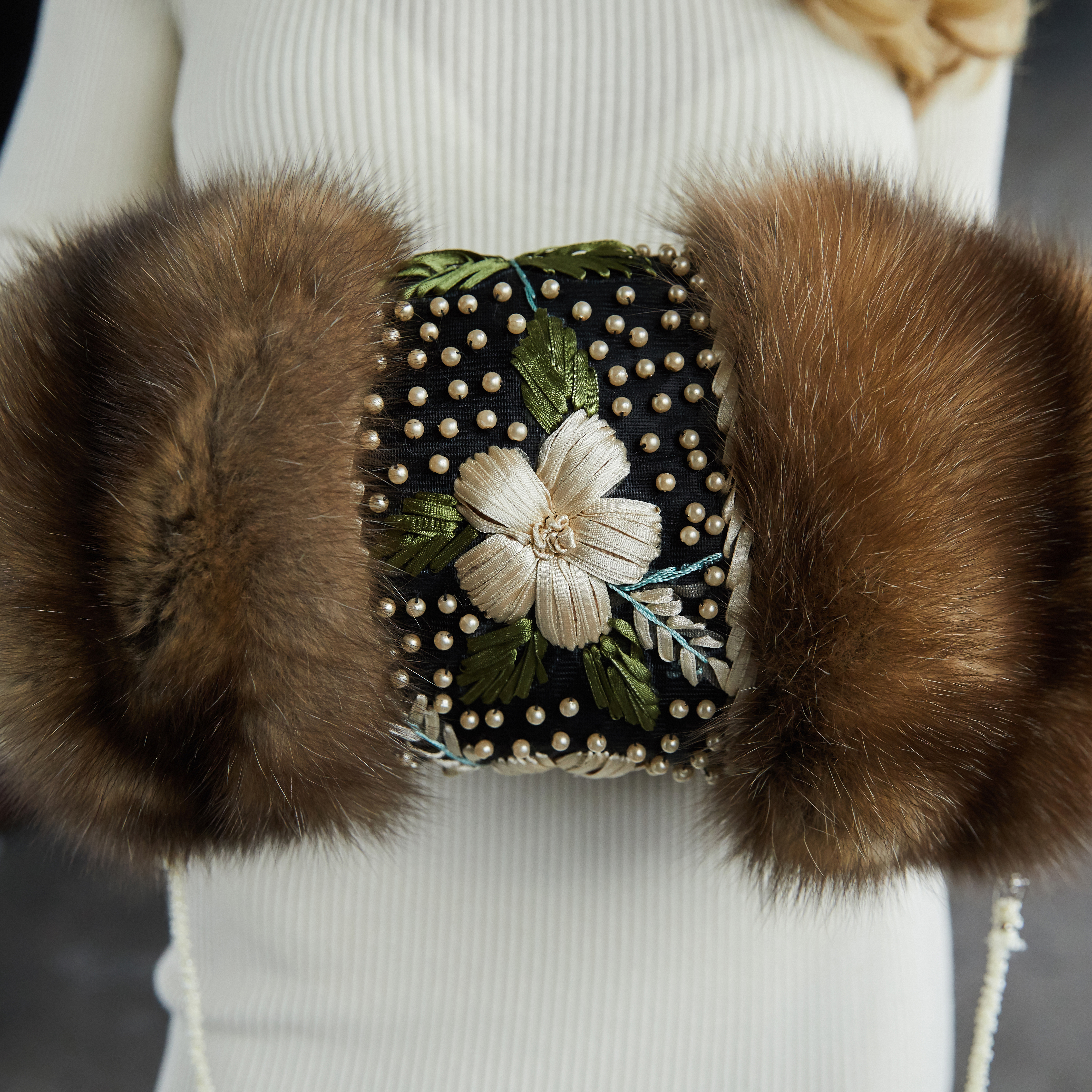 Муфта из меха соболя "Букет" с вышивкой