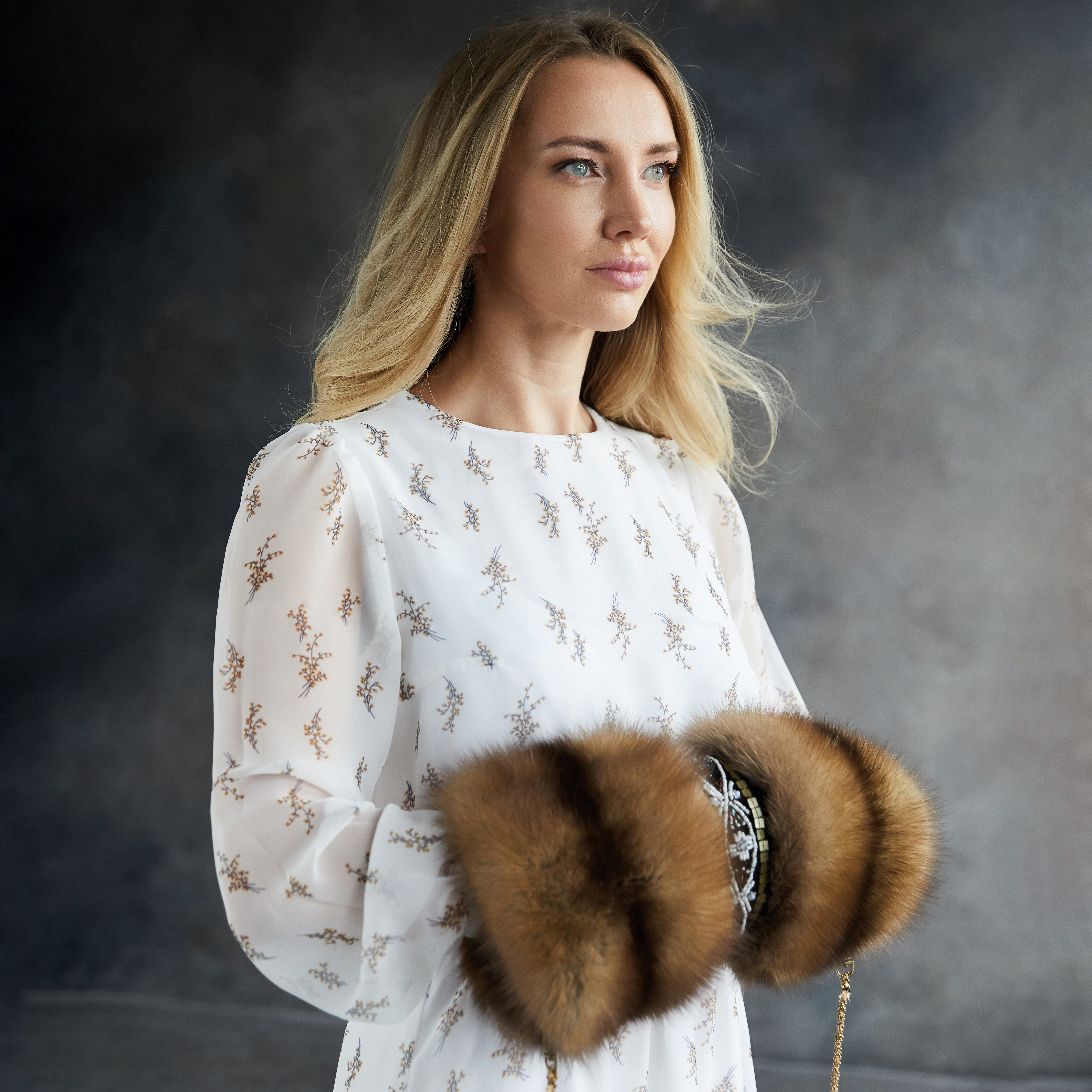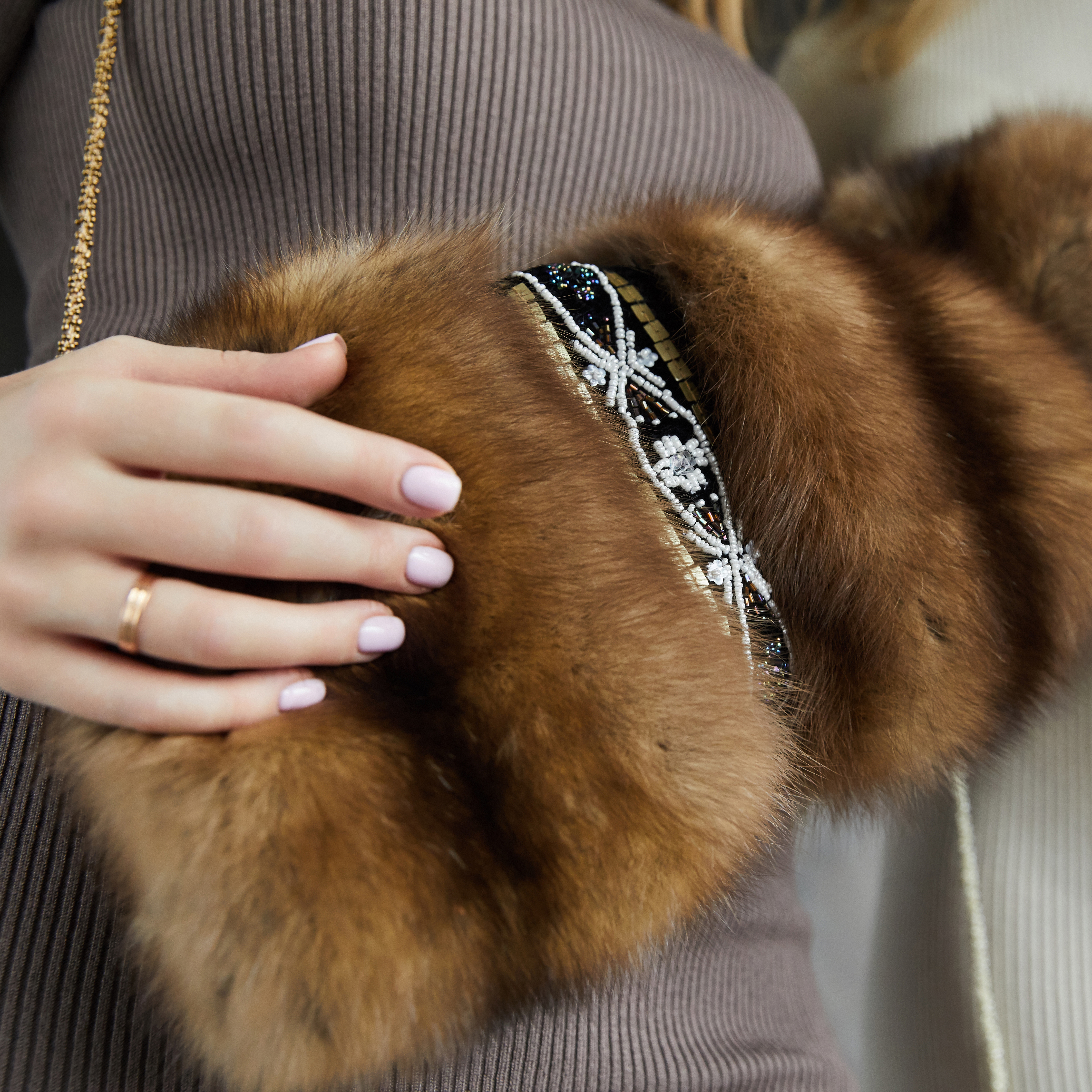 Изящная и стильная муфта из натурального меха соболя с вышивкой - идеальное дополнение к любому зимнему образу. Мягкий и теплый мех обеспечит комфорт и защиту от холода, а изысканная вышивка добавит изысканности и элегантности.