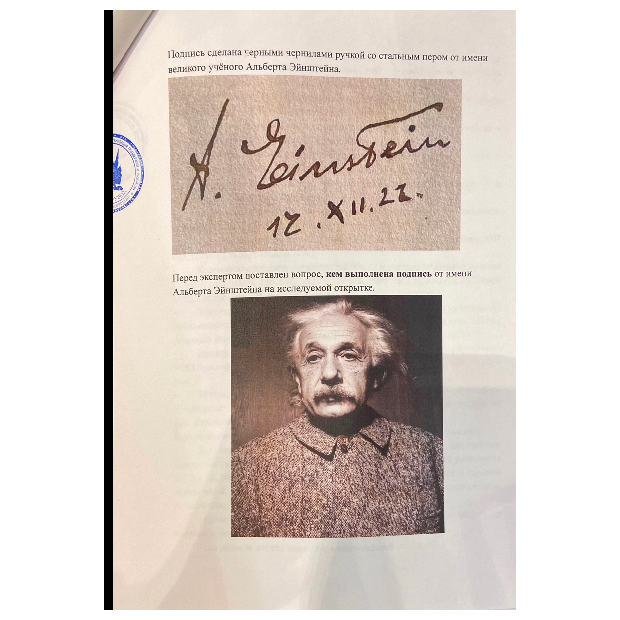 Открытка с автографом учёного Альберта Эйнштейна