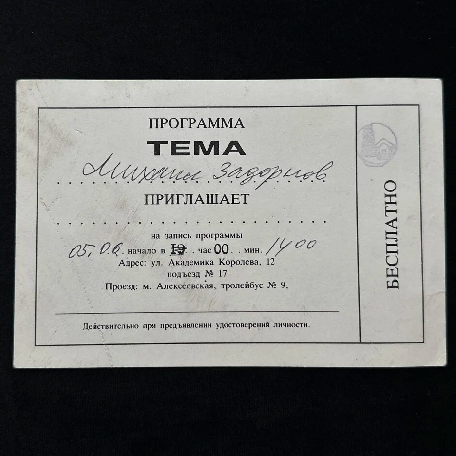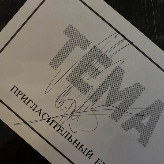 Пригласительный билет с автографом сатирика Михаила Задорнова