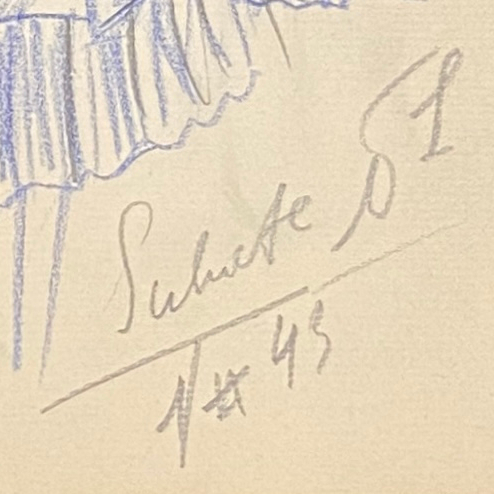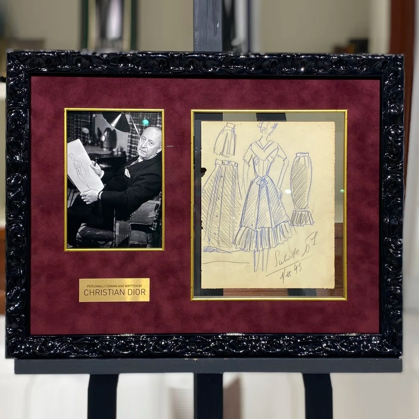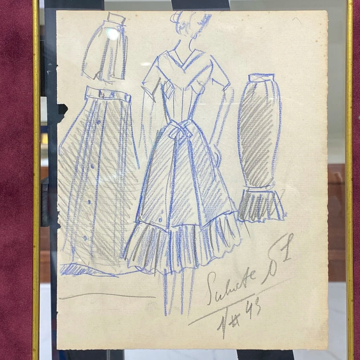 Собственноручный двухсторонний эскиз с рукописными пометками модельера Кристиана Диора