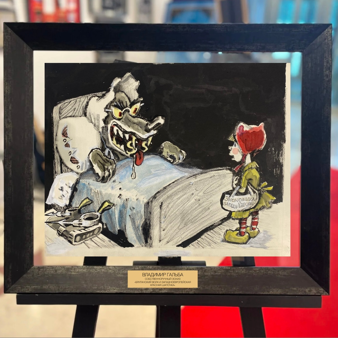 Собственноручный эскиз "Британский Волк и западноевропейская Красная Шапочка" художника Владимира Гальбы