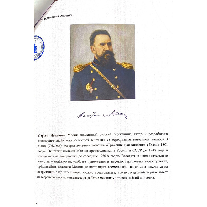 Чертеж с автографом конструктора Сергея Мосина