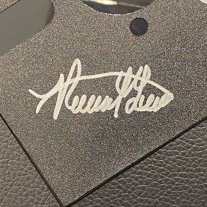 Чистота линий, гармония композиции, изысканный контраст черно-белой пленки — здесь все подчинено эстетике ума, воплощенной в образе одного из величайших людей всех времен. Рядом с фотографией — подлинный автограф, оставленный рукой, выведшей знаменитое уравнение E=mc². Эти несколько букв — не просто чернильный штрих, а символ интеллектуальной власти, знак принадлежности к миру, в котором гений — единственная валюта, не теряющая ценности.