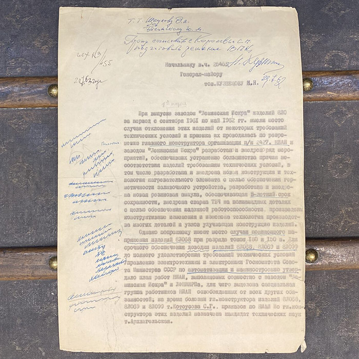 Документ с рукописными пометками, обращением и автографами учёного Николая Пилюгина