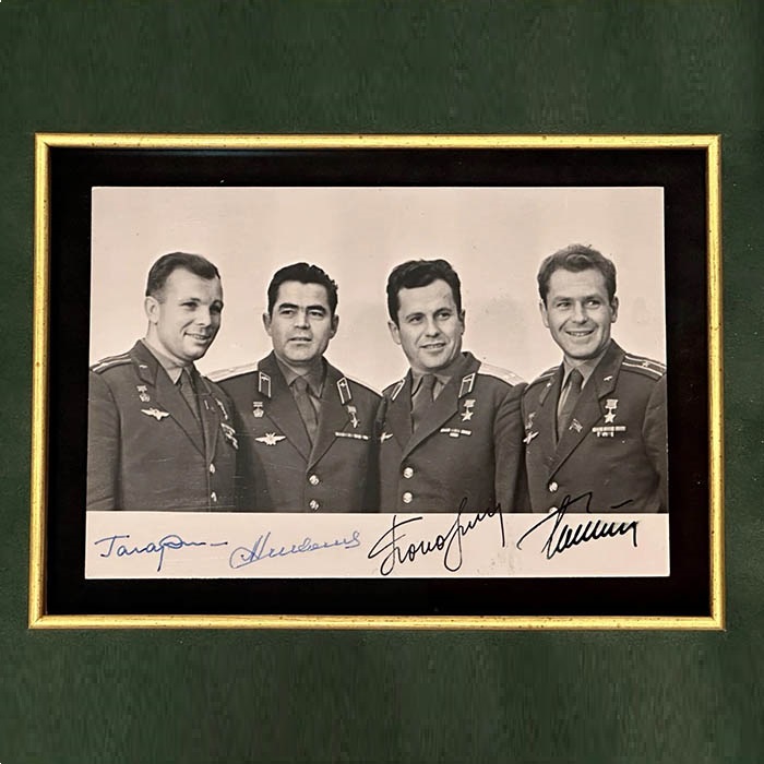 Фото с 4-мя автографами космонавтов (Юрий Гагарин, Андриян Николаев, Павел Попович, Герман Титов)
