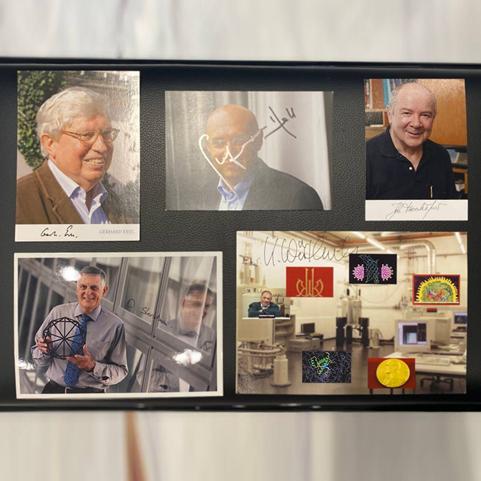 Фотографии с автографами лауреатов Нобелевской премии по химии Курта Вютриха, Штефана Хелля, Иоганна Дайзенхофера, Герхарда Эртля, Даниэля Шехтмана
