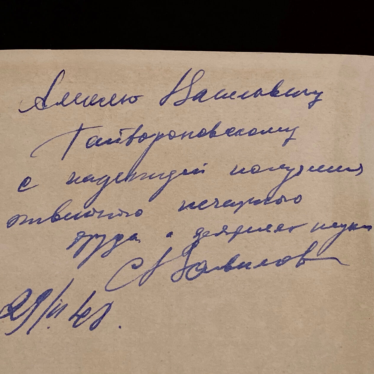 Книга «Исаак Ньютон» с автографом и рукописным пожеланием физика Сергея Вавилова