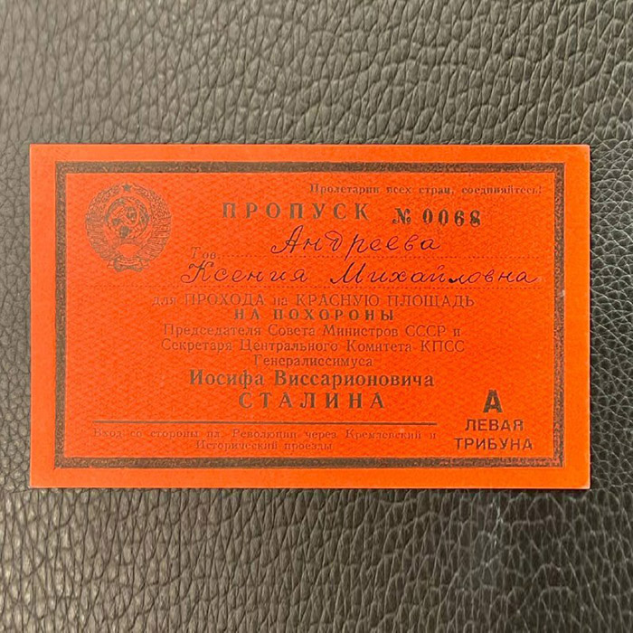 Пропуск на похороны Иосифа Сталина