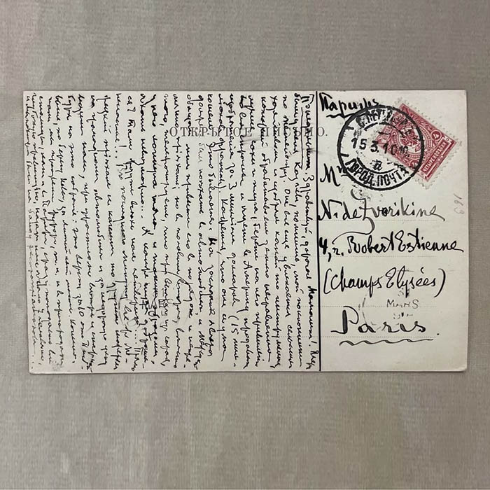 Письмо адресовано матери, Елизавете Оттовне, и отправлено художником из Парижа, куда он иммигрировал из России в 1921 году.