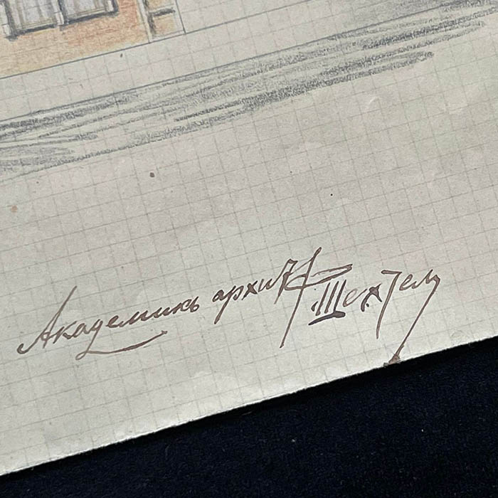 Собственноручный эскиз с автографом Фёдора Шехтеля