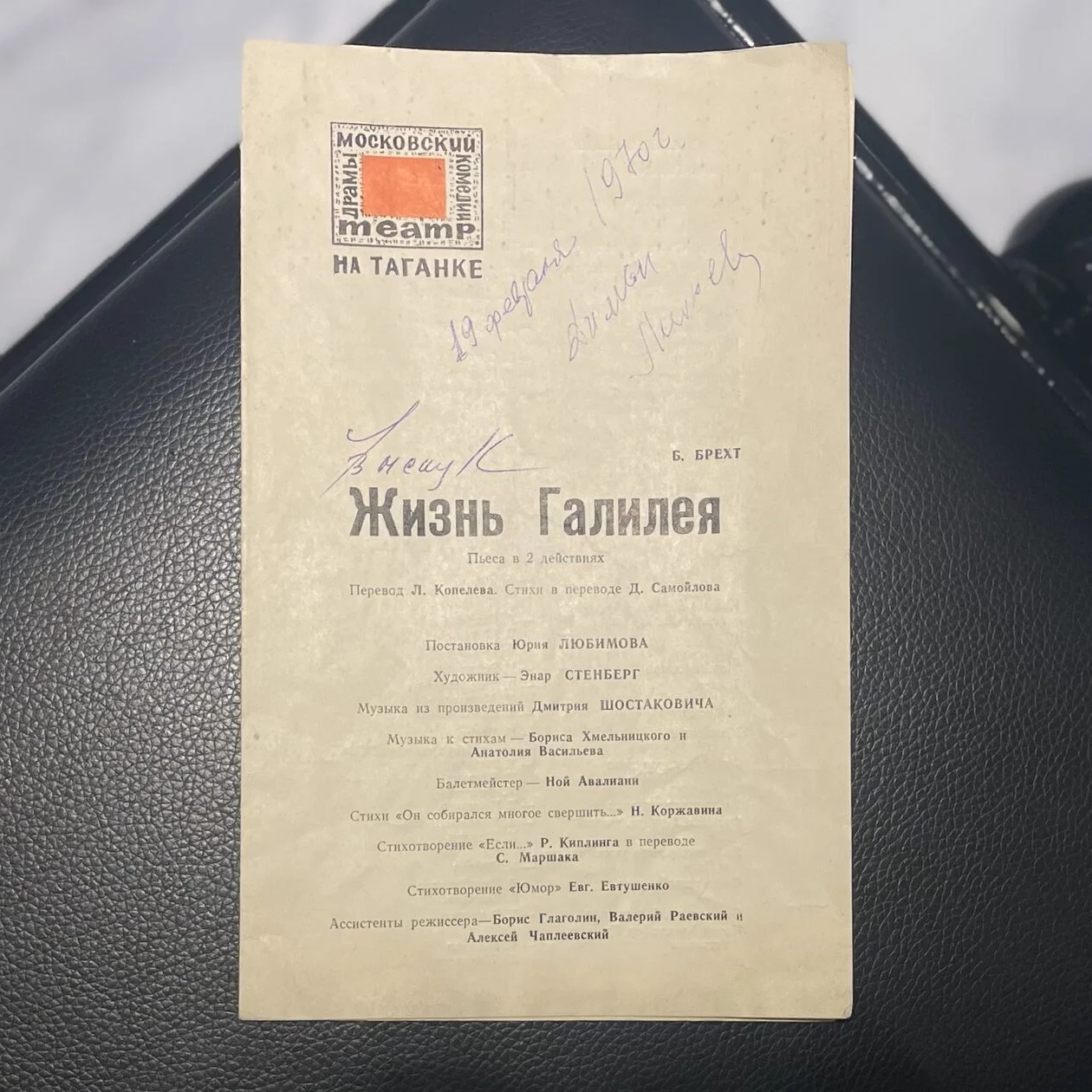 Брошюра к пьесе «Жизнь Галилея» с автографом поэта и певца Владимира Высоцкого