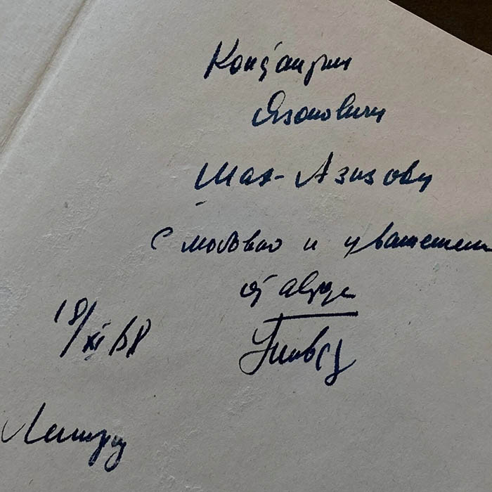 Книга с рукописным обращением и автографом режиссёра Георгия Товстоногова