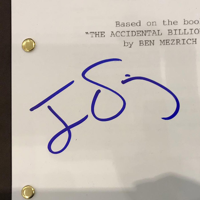 Сценарий фильма "Социальная сеть" с автографом актера Джесси Айзенберга