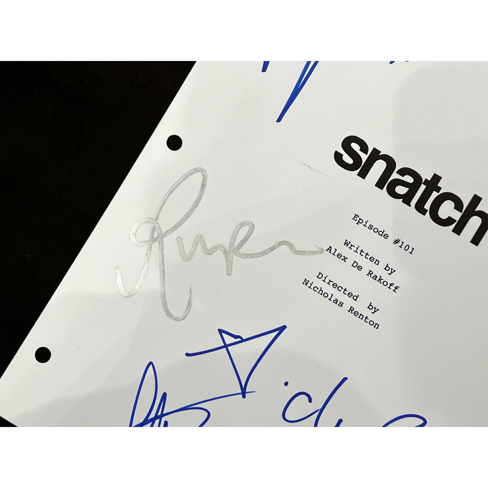 Сценарий сериала "Большой куш" с автографами Фиби Дайневор, Руперта Гринта, Люсьена Лависконта, Алекса Де Ракоффа