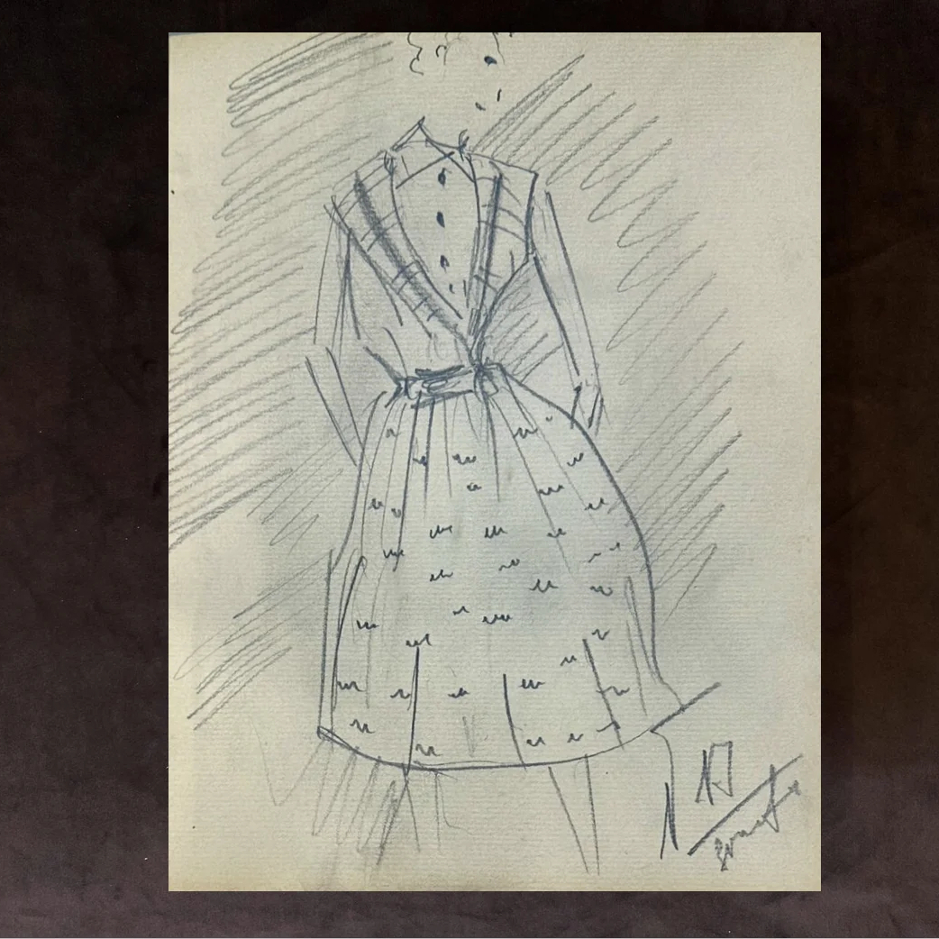Собственноручный эскиз с рукописными пометками модельера Кристиана Диора
