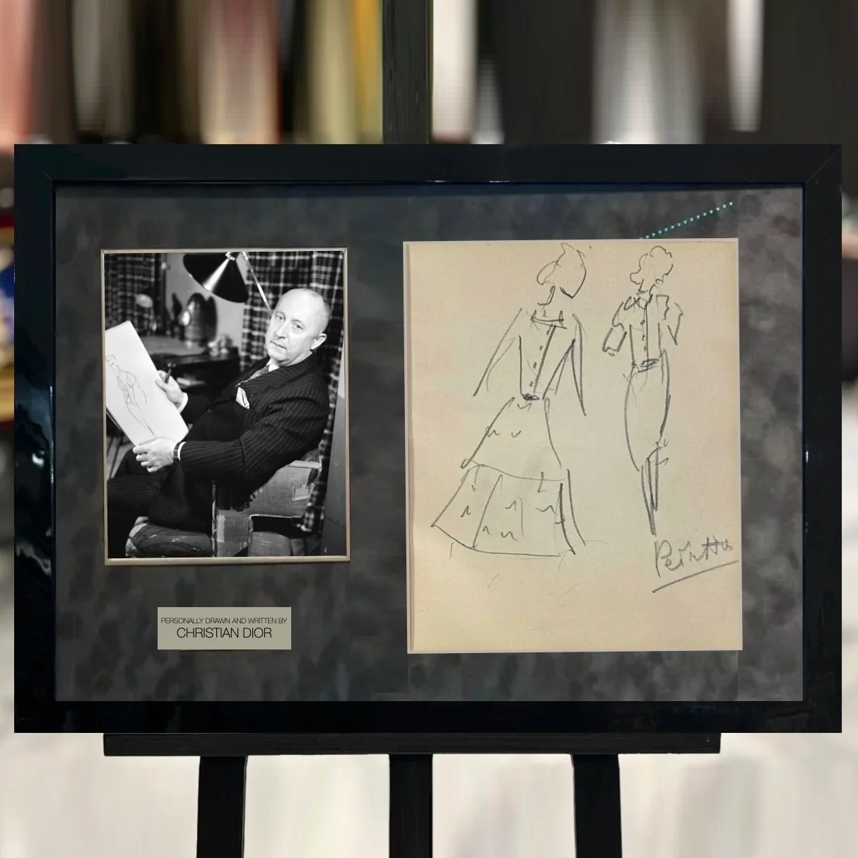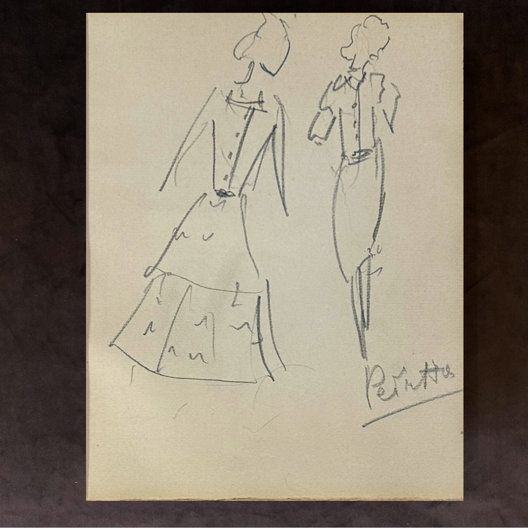 Собственноручный эскиз с рукописными пометками модельера Кристиана Диора