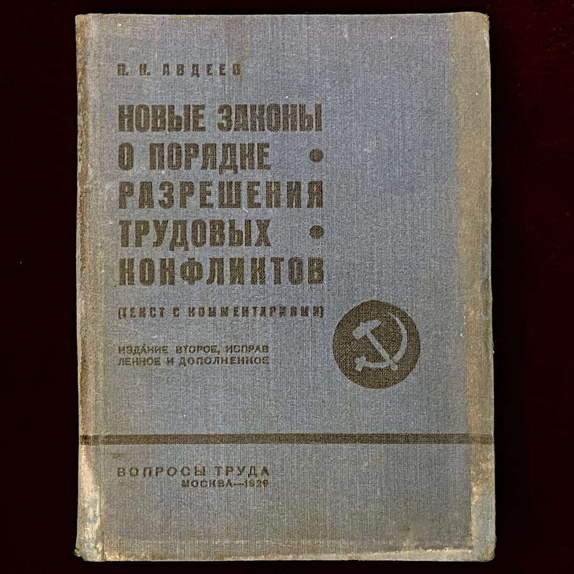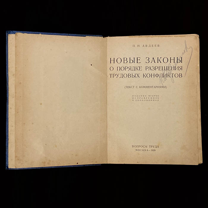 Книга «Новые законы о порядке разрешения трудовых конфликтов». Авдеев П.Н., Москва, Издательство «Вопросы труда», 1929 год