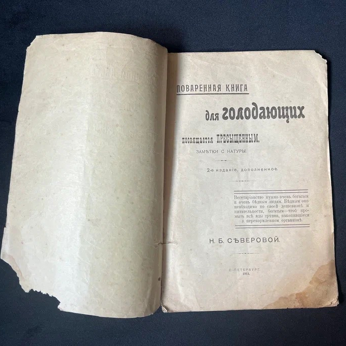 Книга «Поваренная книга для голодающих. Посвящается пресыщенным» 2-е издание, 1911 год