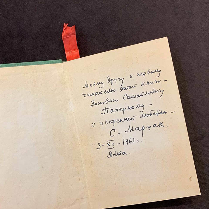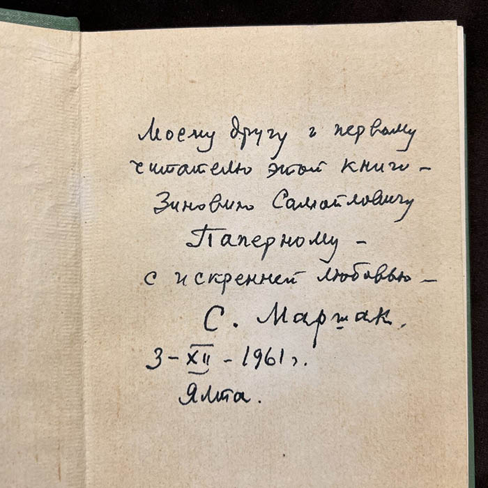 Книга "Ради жизни на земле" с рукописным пожеланием и автографом Самуила Маршака