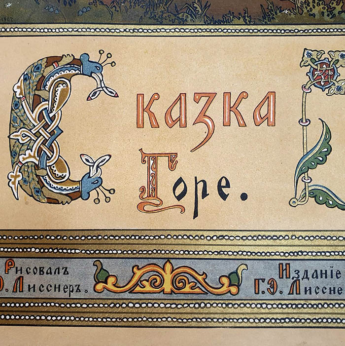 Антикварное издание детской сказки «Горе», оформленное изящными рисунками знаменитого книжного иллюстратора Эрнеста Лисснера. Книга, выпущенная в 1902 году, содержит большое количество ярких цветных иллюстраций, являя собой прекрасный образец книжной графики начала XX века, которая на тот момент переживала свой расцвет.