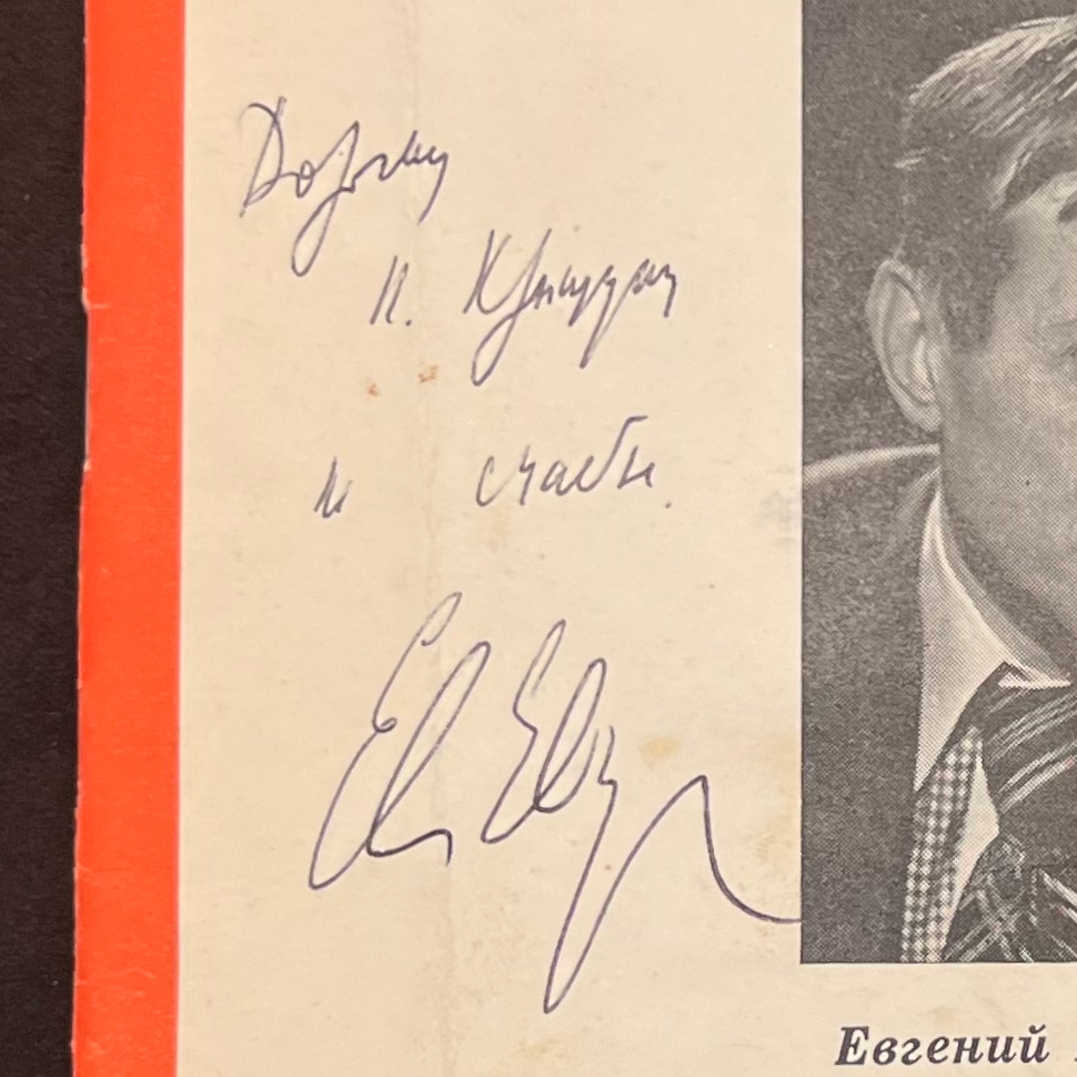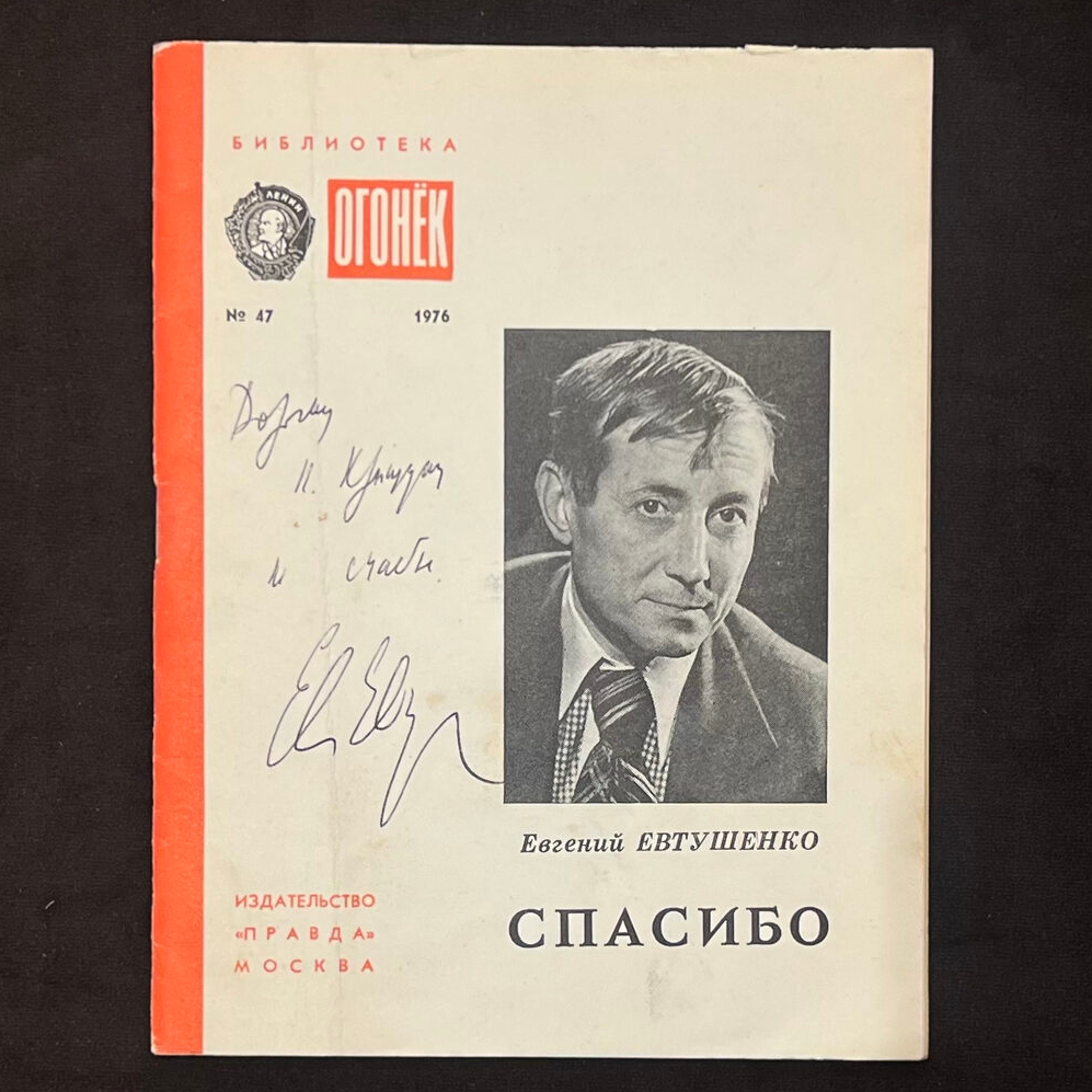 Книга "Спасибо" с рукописным пожеланием и автографом поэта Евгения Евтушенко