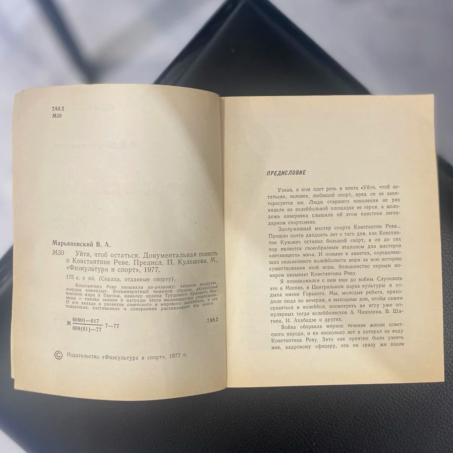 Книга "Уйти, чтоб остаться" В.А. Марьяновского, Москва, издательство «Физкультура и спорт», 1977 год